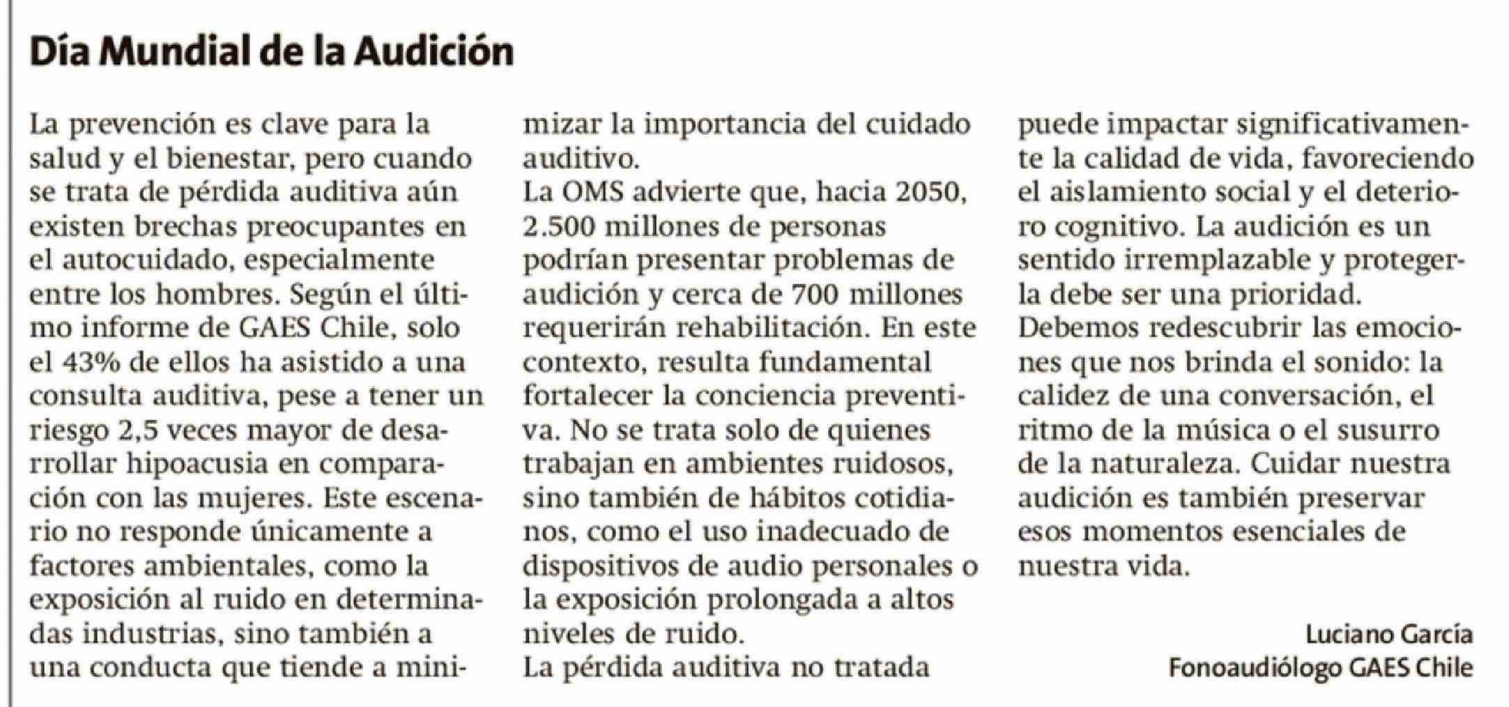 Columnas de Opinión: Día Mundial de la Audición 05-03-2026 La Estrella de Valparaíso |