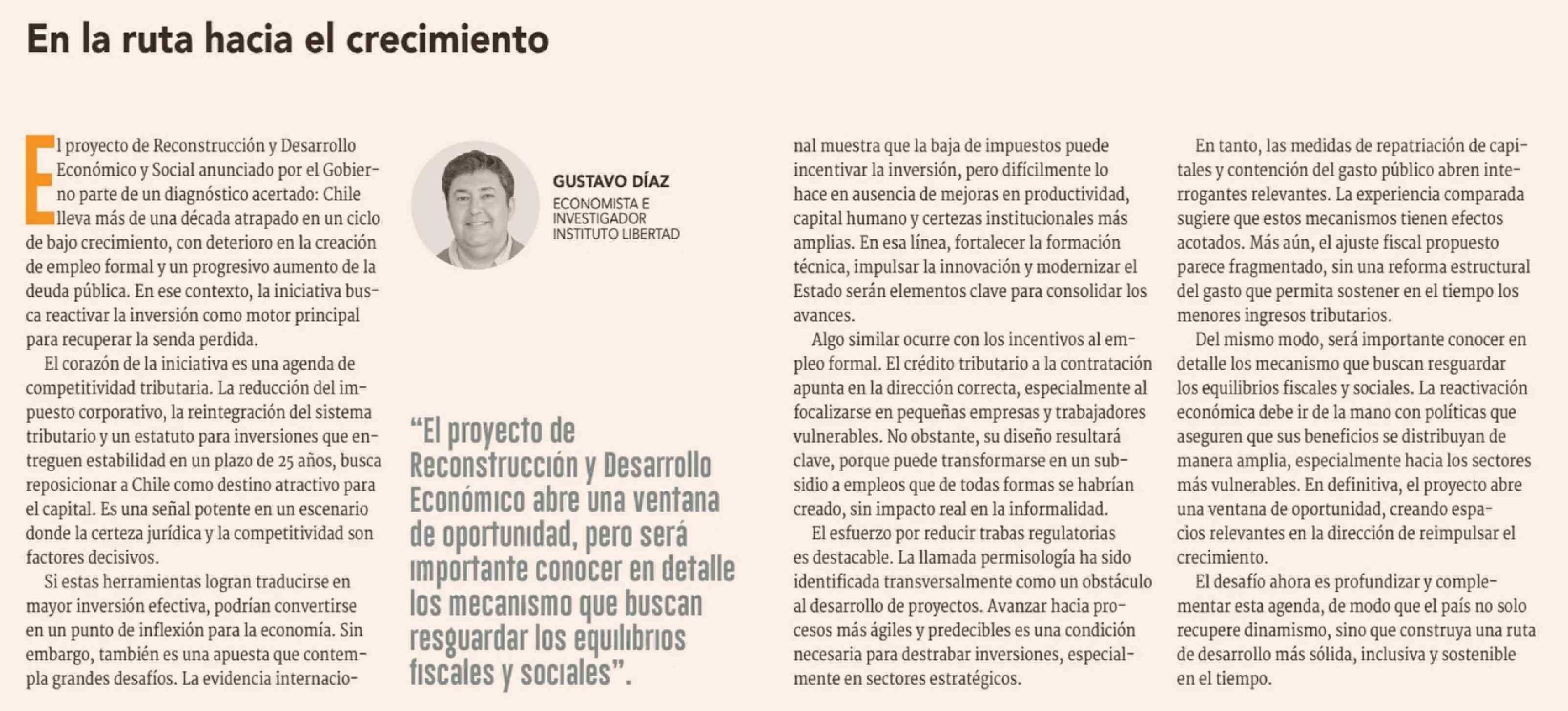 Columnas de Opinión: En la ruta hacia el crecimiento 20-04-2026 Diario Financiero |