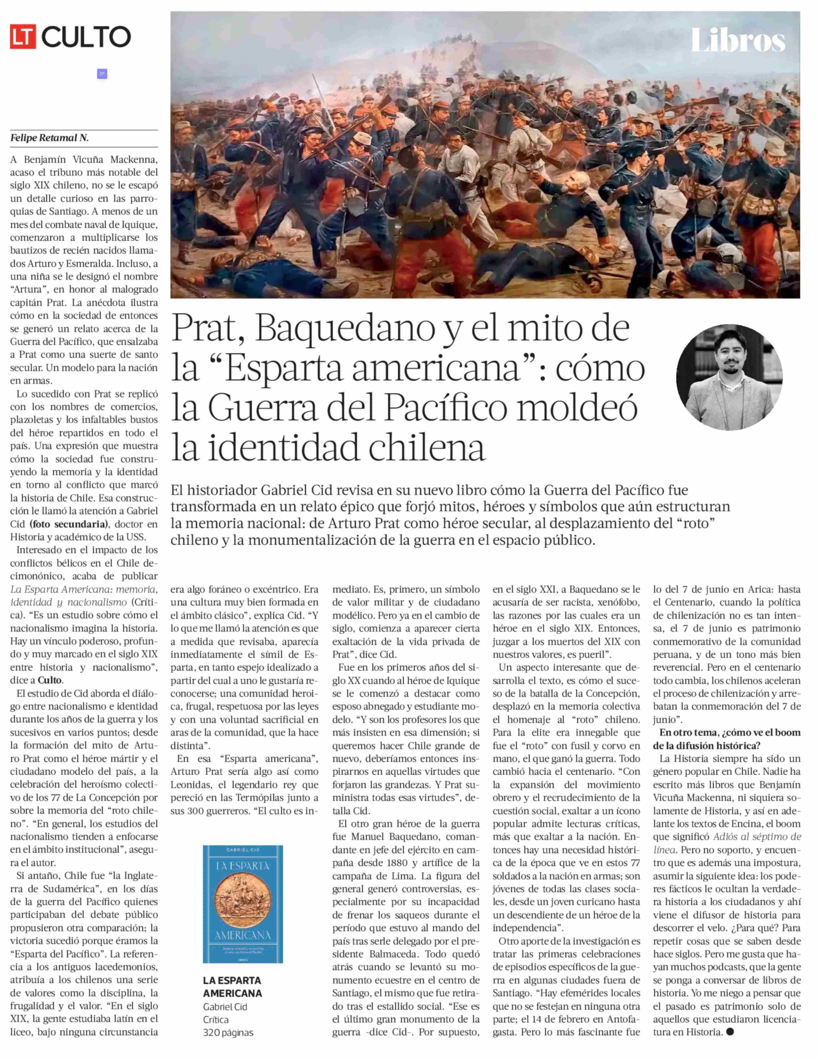 Prat, Baquedano y el mito de la "Esparta americana": cómo la Guerra del Pacífico moldeó la identidad chilena 10-01-2026 La Tercera |