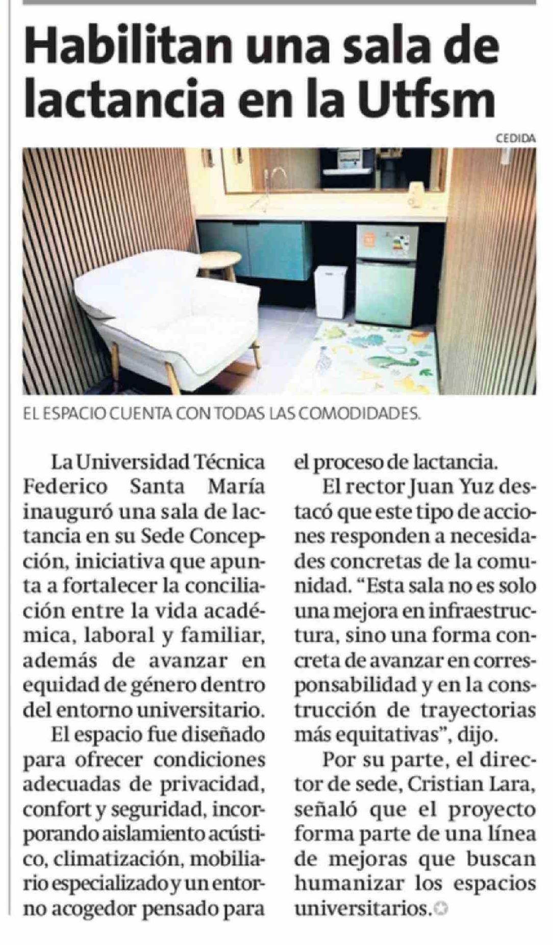 Habilitan una sala de lactancia en la Utfsm 19-03-2026 La Estrella de Concepción |