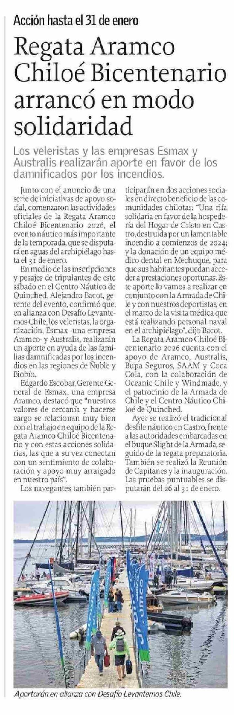 Título: Regata Aramco Chiloé Bicentenario arrancó en modo solidaridad