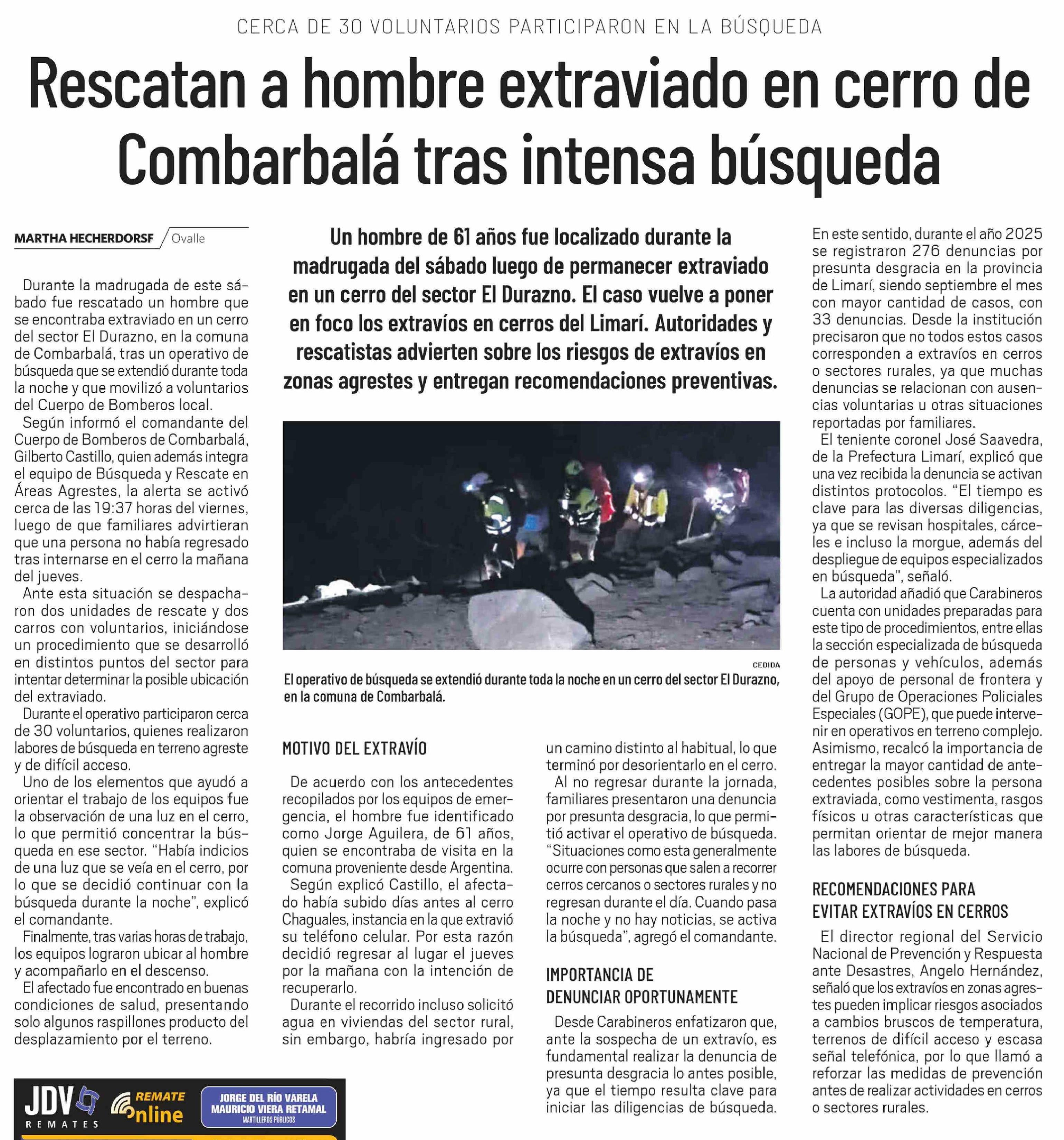 | Título: | Rescatan a hombre extraviado en cerro de Combarbalá tras intensa búsqueda |