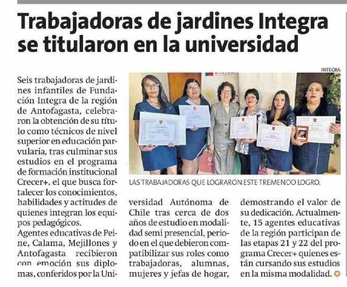 Trabajadoras de jardines Integra se titularon en la universidad 12-05-2025 La Estrella de Antofagasta |