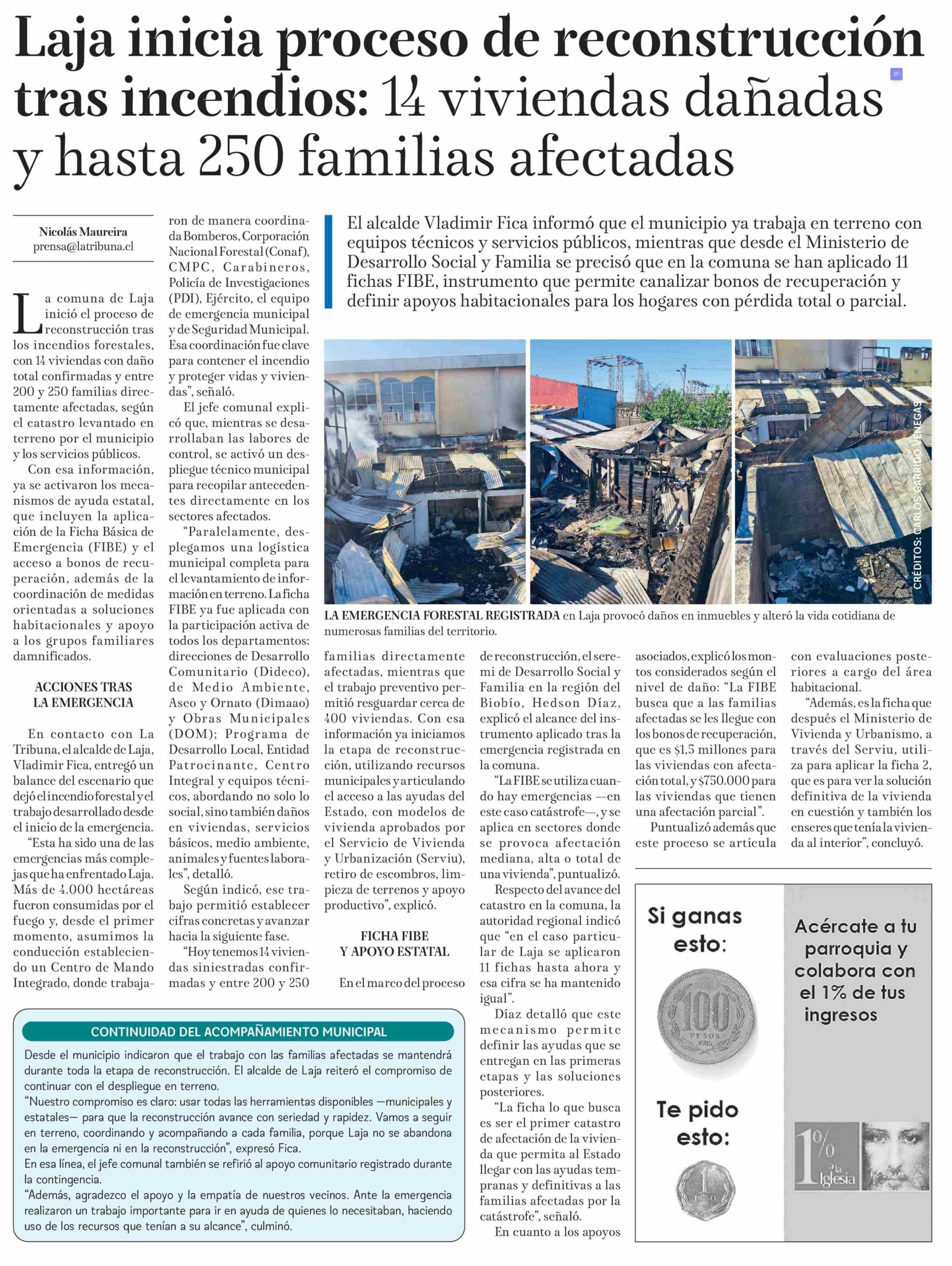 Título: Laja inicia proceso de reconstrucción tras incendios: 14 viviendas dañadas y hasta 250 familias afectadas