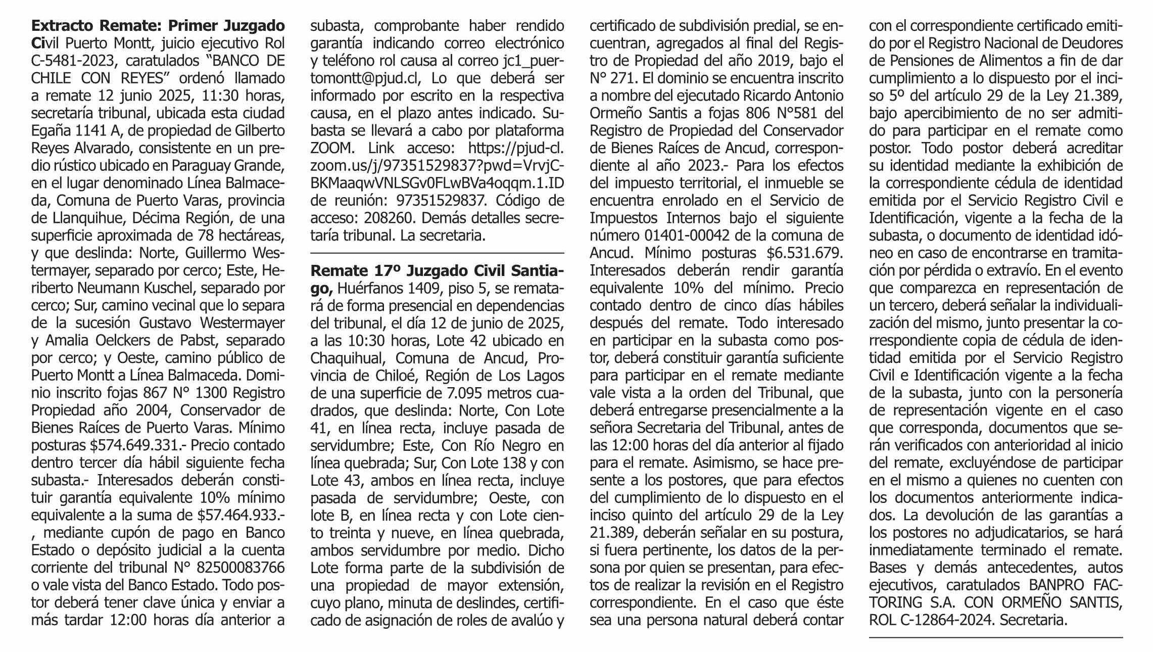 | Fecha: | 08-06-2025 | Sector: | Remates | Región: | Región Metropolitana de Santiago |