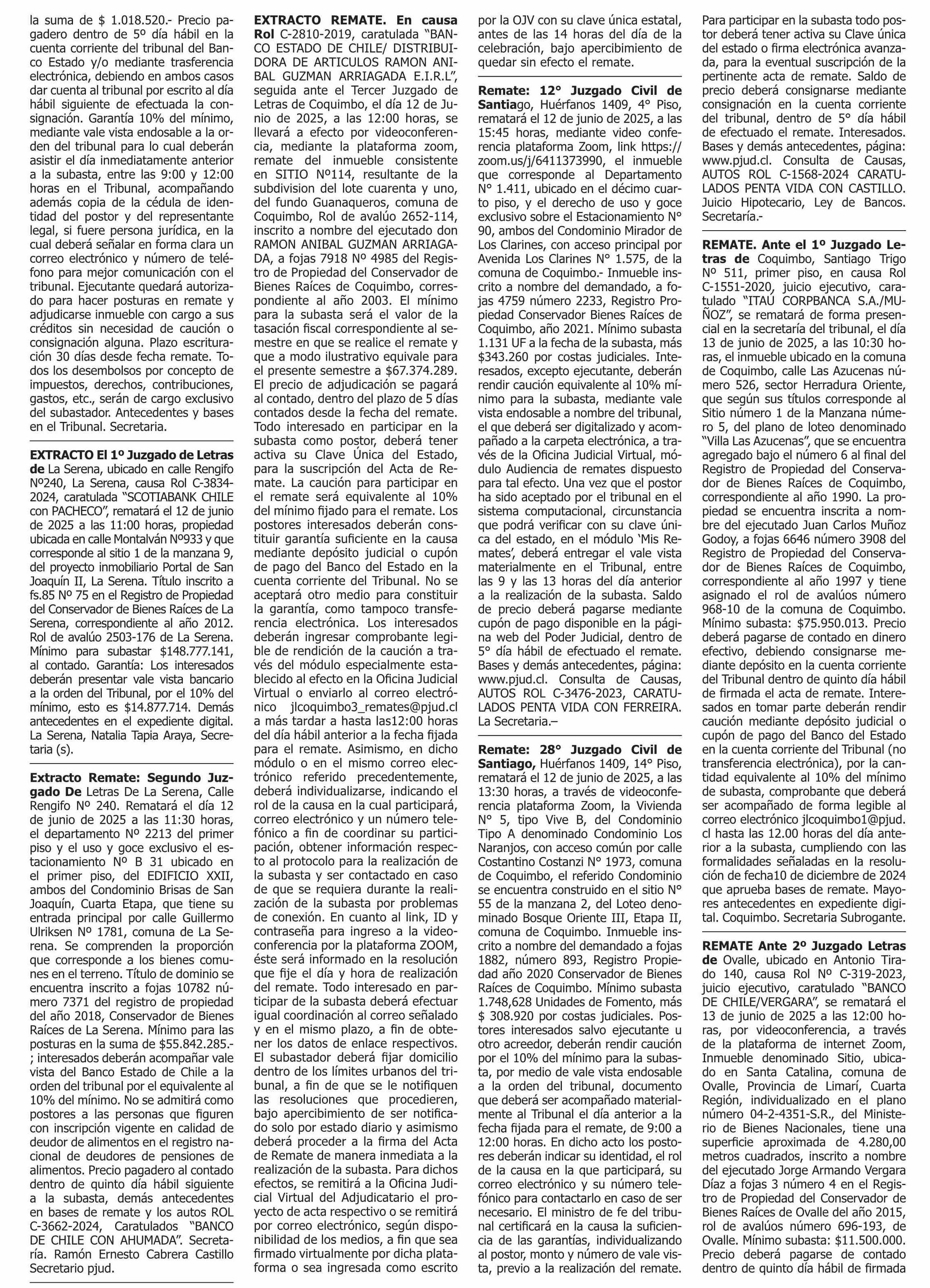 REMATES: REMATES de PROPIEDADES (Ordenados Por Regiones 08-06-2025 P&L Públicos y Legales |