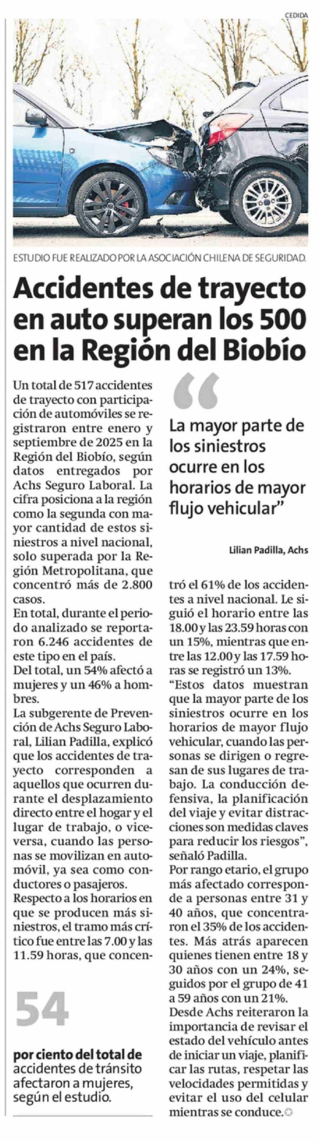 Accidentes de trayecto en auto superan los 500 en la Región del Biobio 10-03-2026 La Estrella de Concepción |