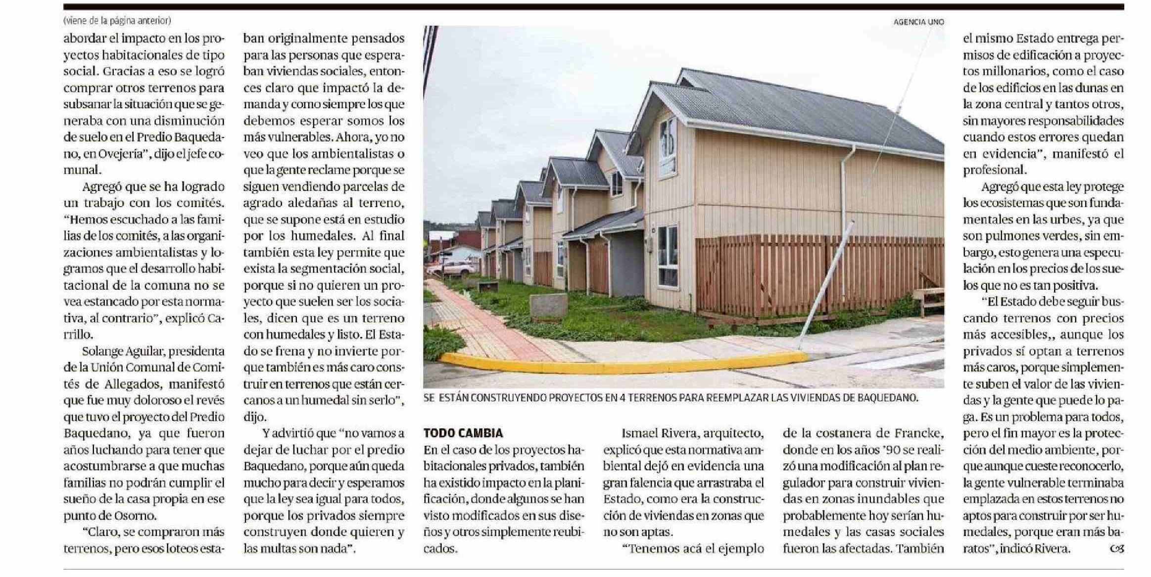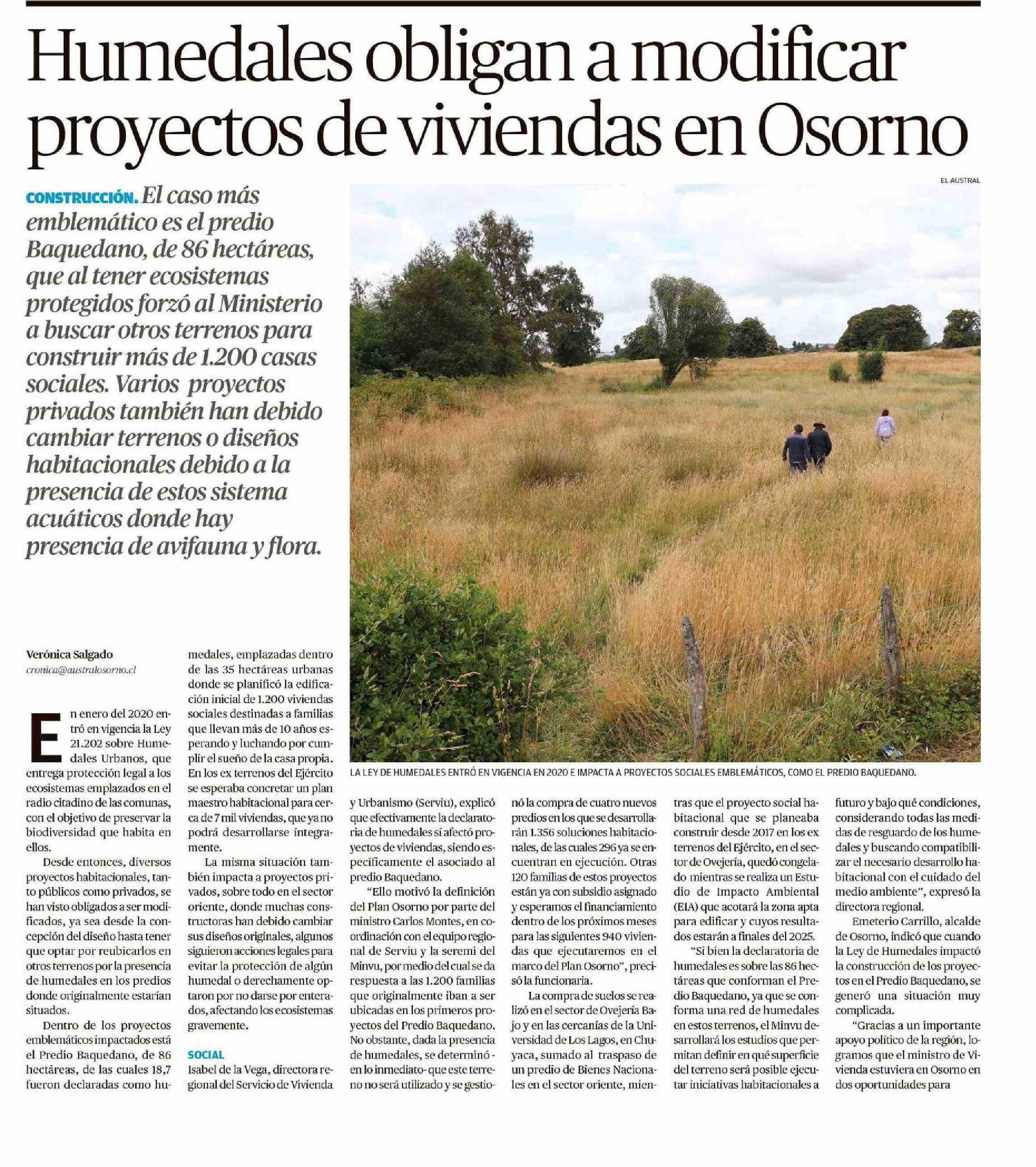 Humedales obligan a modificar proyectos de viviendas en Osorno 12-04-2024 El Austral de Osorno |