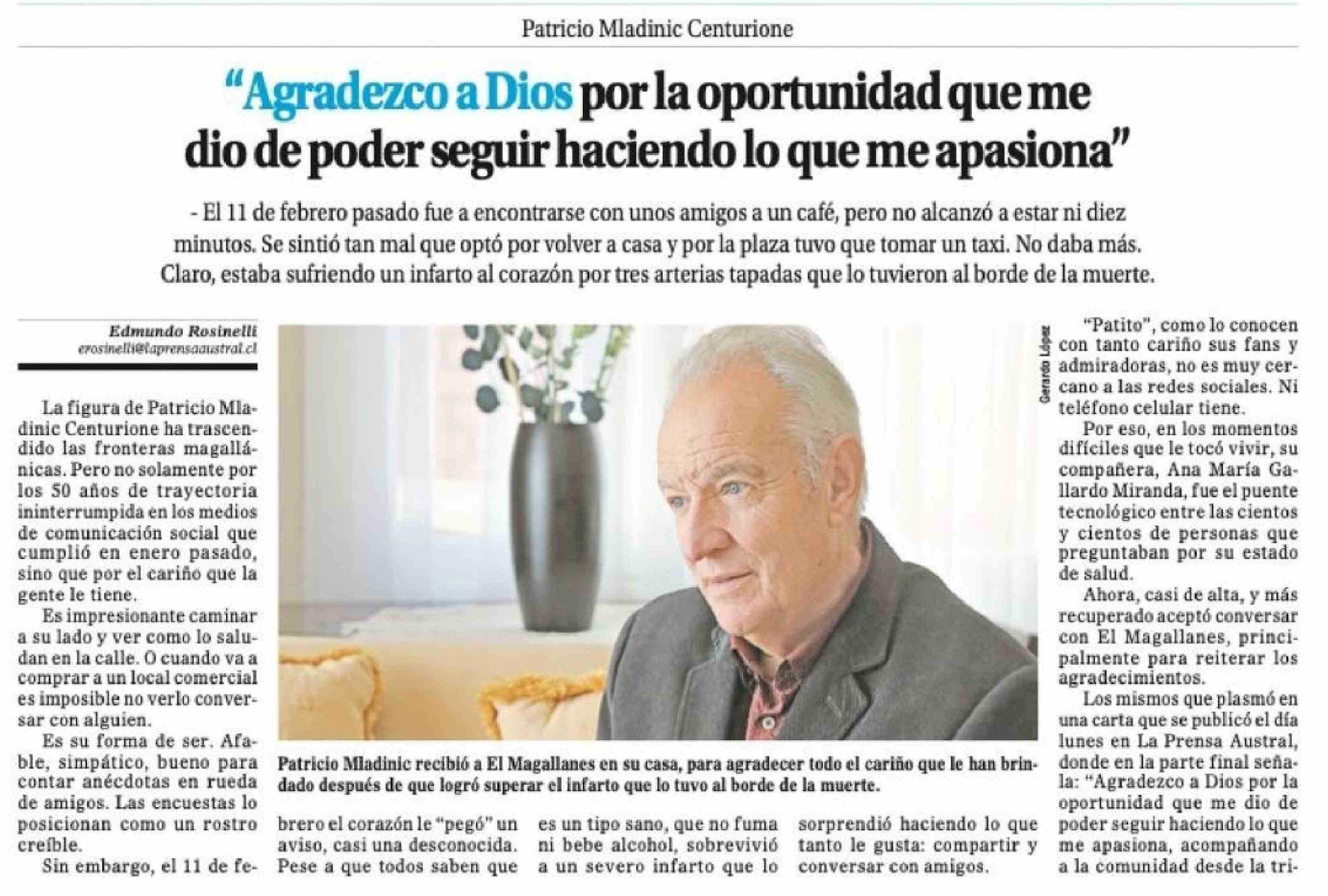 "Agradezco a Dios por la oportunidad que me dio de poder seguir haciendo lo que me apasiona" 15-03-2026 El Magallanes |