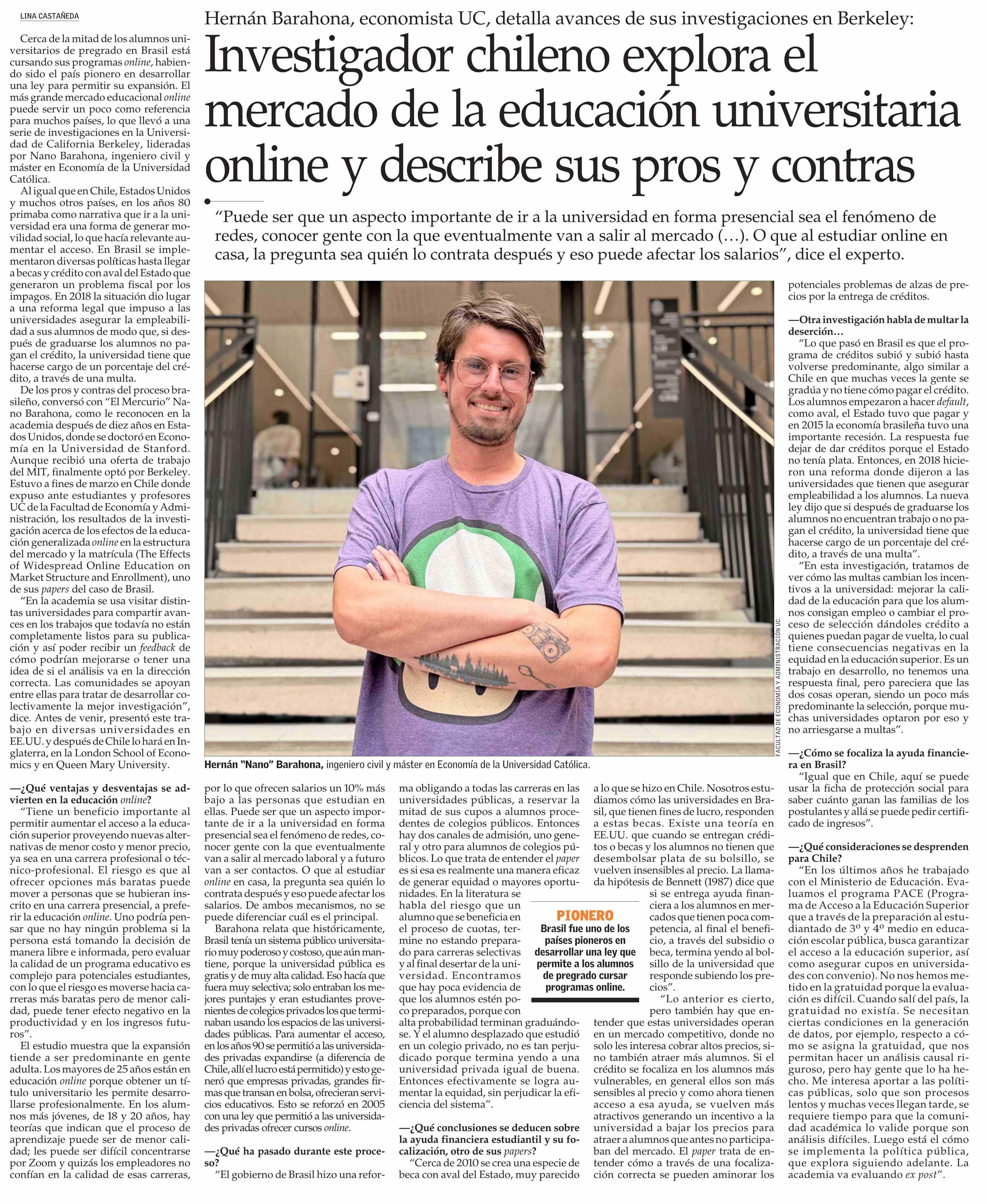 Título: Investigador chileno explora el mercado de la educación universitaria online y describe sus pros y contras
