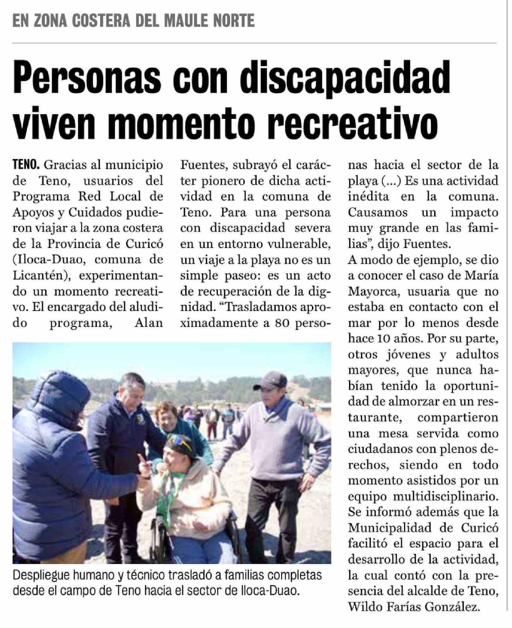 Personas con discapacidad viven momento recreativo 01-04-2026 La Prensa de Curicó |