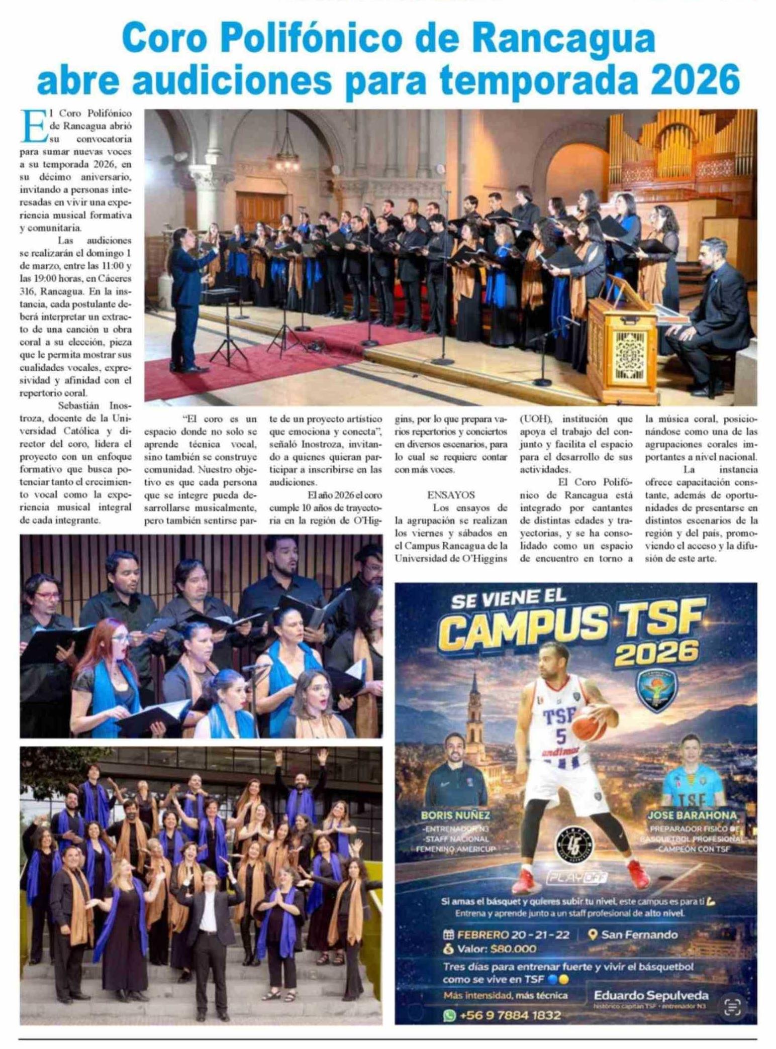 | Título: | Coro Polifónico de Rancagua abre audiciones para temporada 2026 |