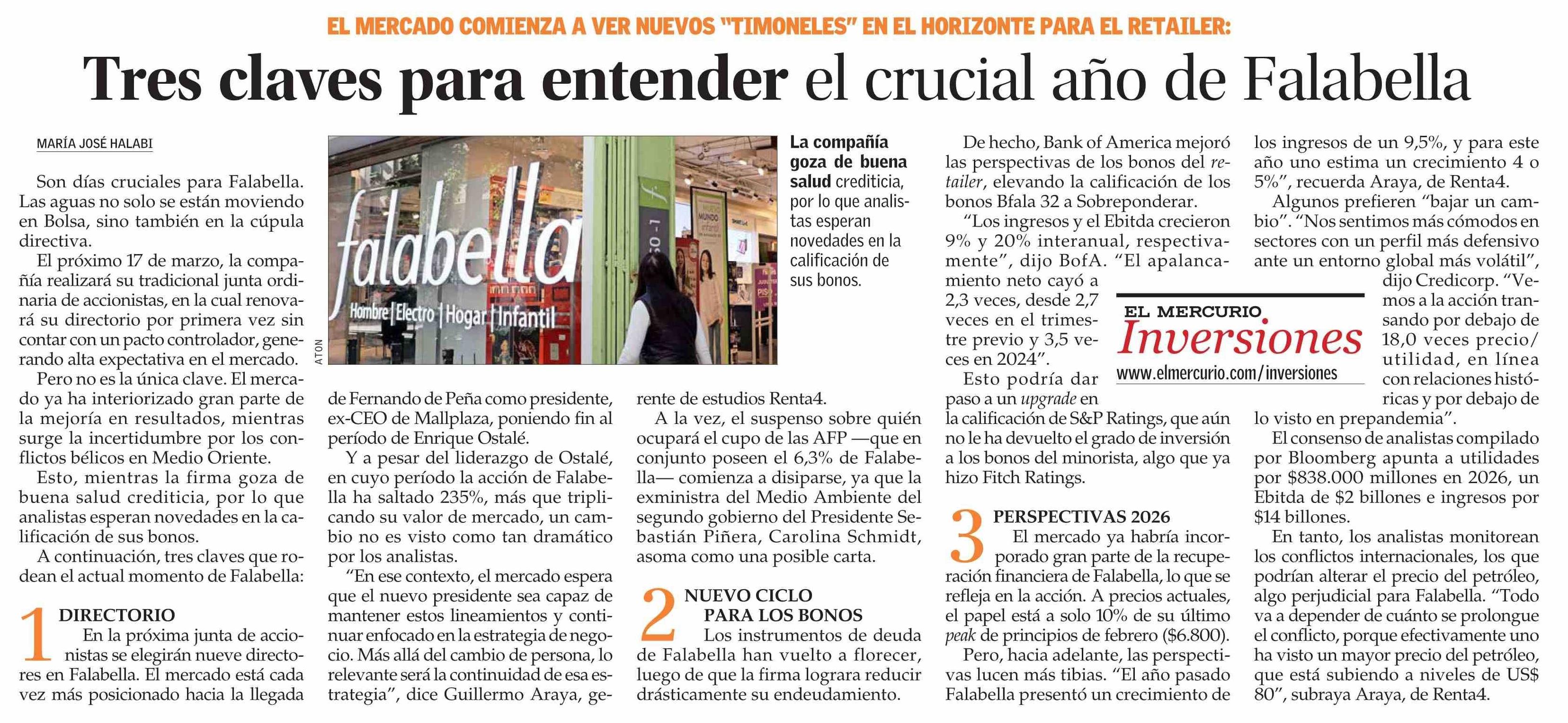 Tres claves para entender el crucial año de Falabella 06-03-2026 El Mercurio |