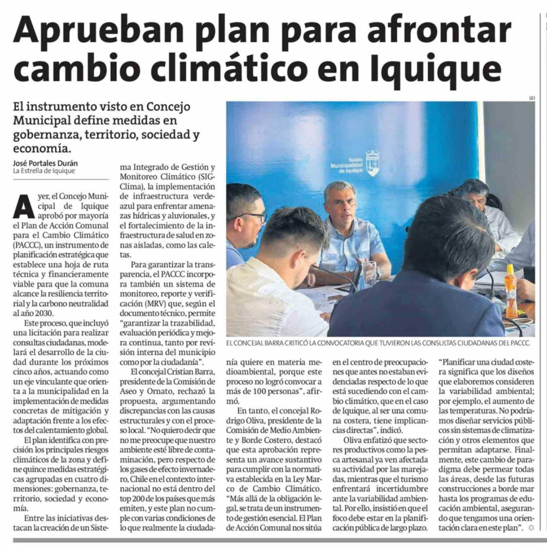 Aprueban plan para afrontar cambio climático en Iquique 06-02-2026 La Estrella de Iquique |