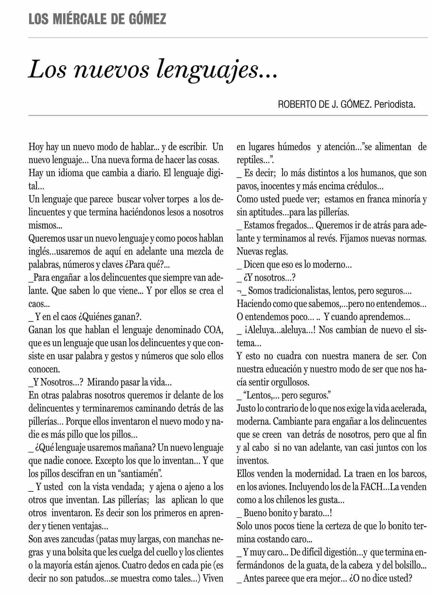 CARTAS: Los nuevos lenguajes...