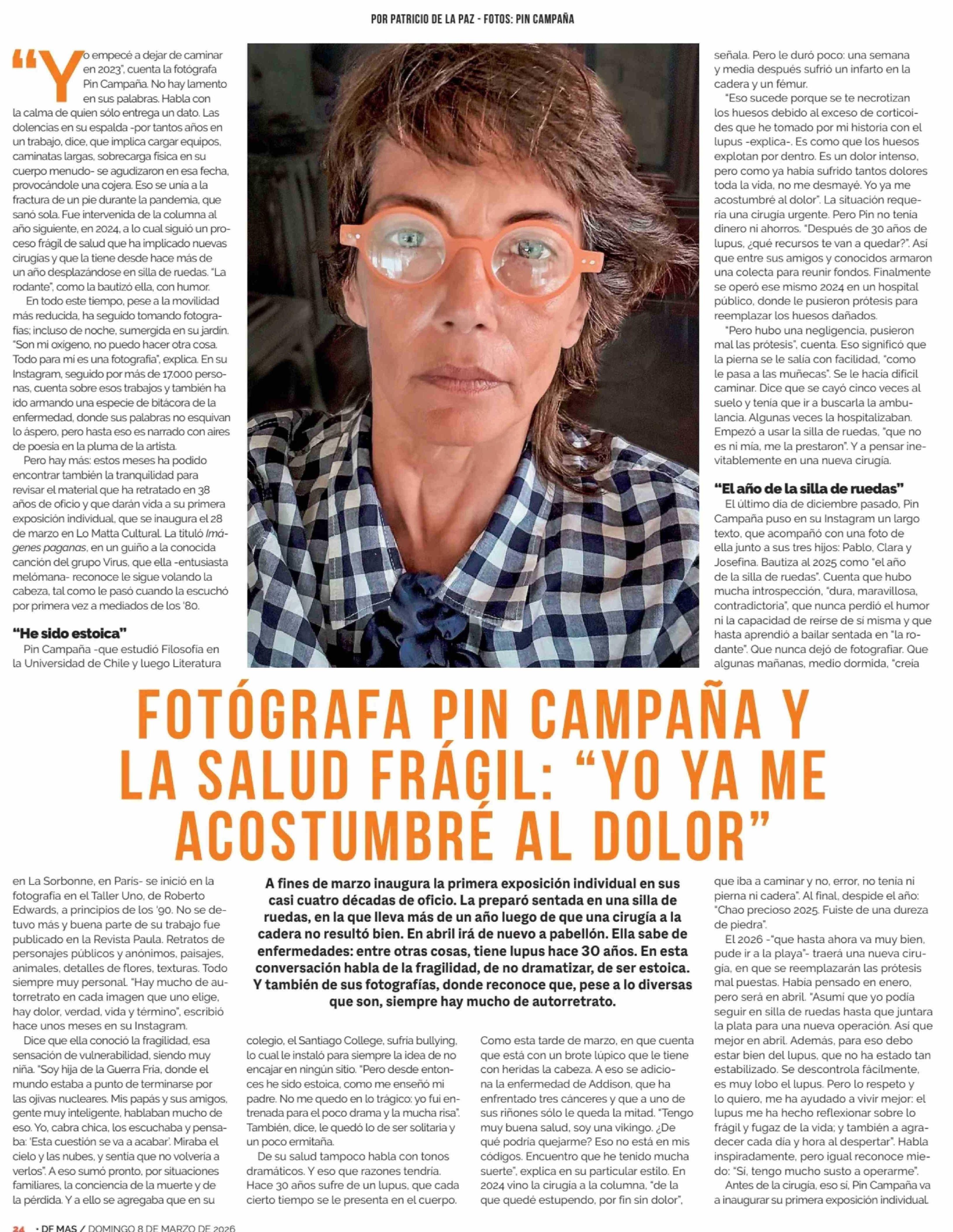 Título: FOTÓGRAFA PIN CAMPAÑA Y LA SALUD FRAGIL: "YO YA ME ACOSTUMBRE AL DOLOR"