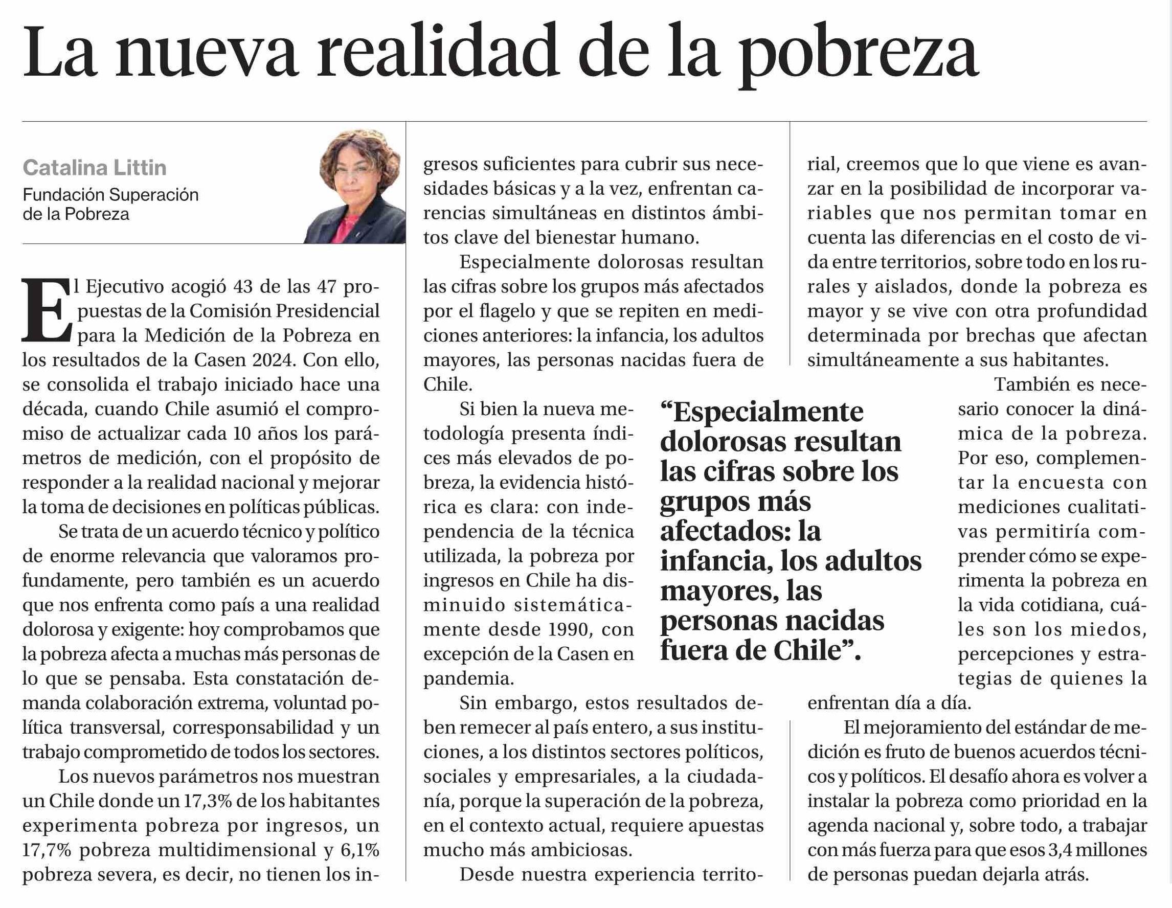 Columnas de Opinión: La nueva realidad de la pobreza 09-01-2026 La Segunda |