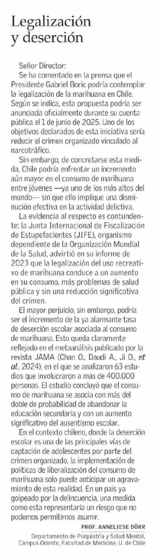 CARTAS: Legalización y deserción 28-05-2025 El Mercurio |