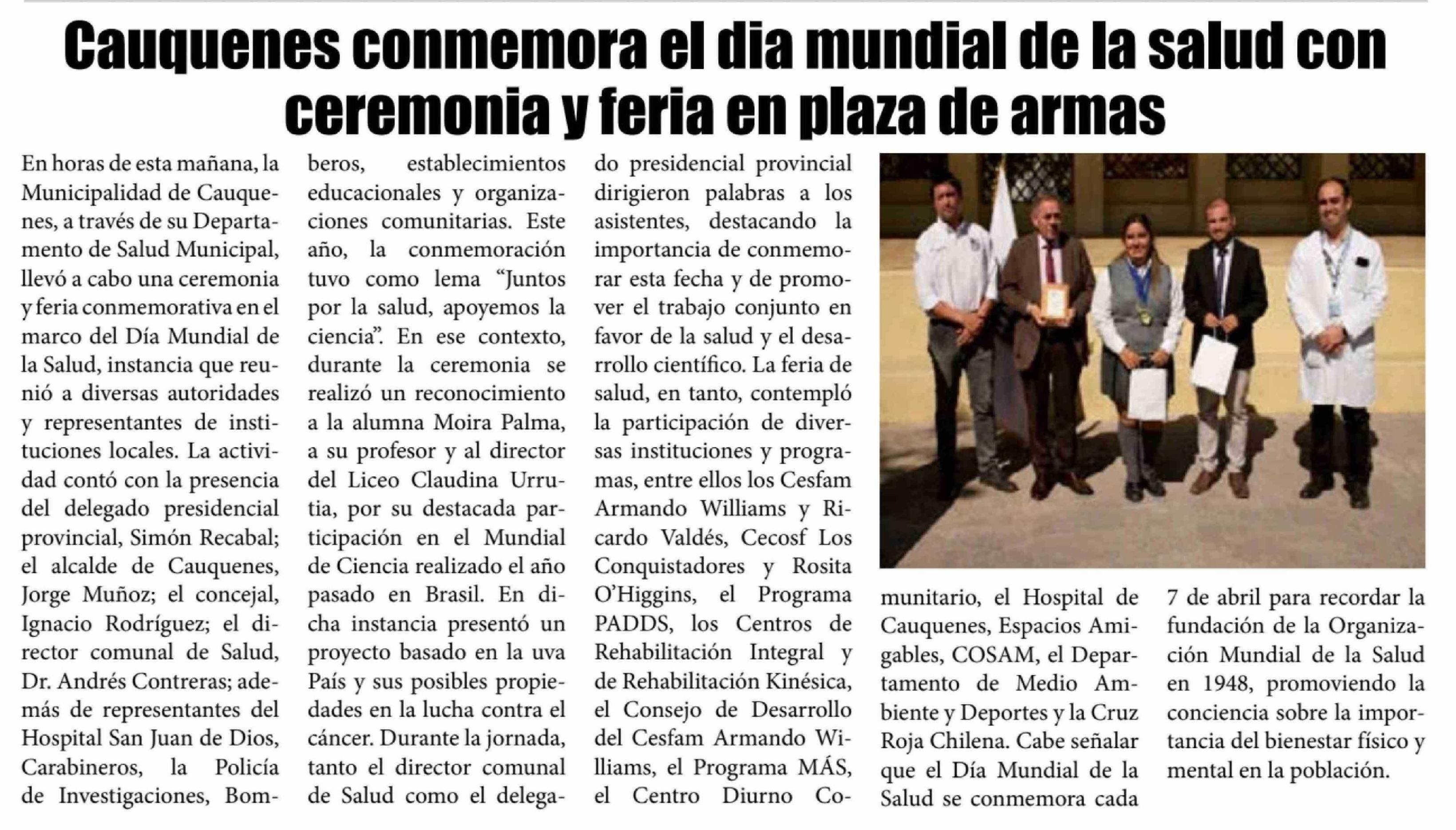 | Título: | Cauquenes conmemora el dia mundial de la salud con ceremonia y feria en plaza de armas |