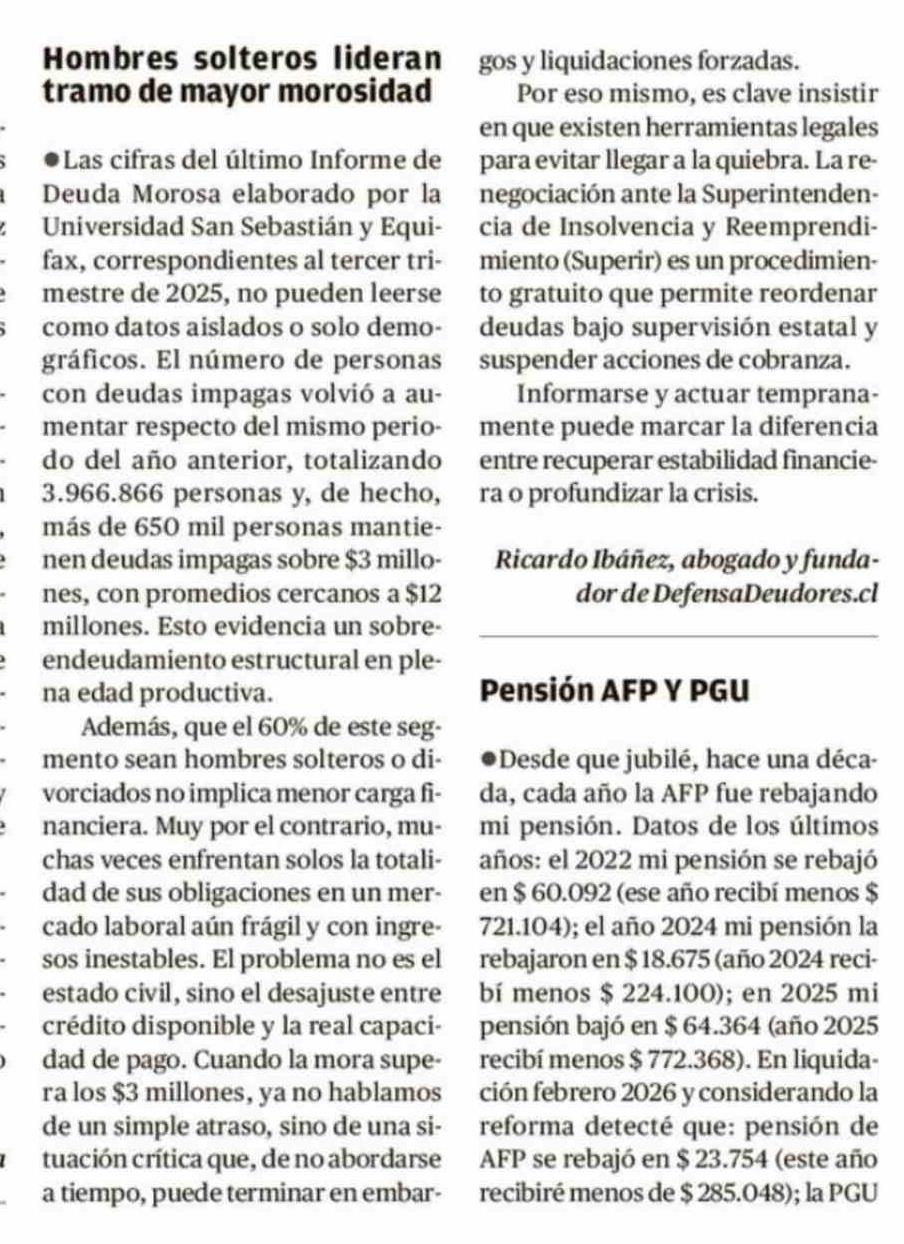 Título: Cartas: Hombres solteros lideran tramo de mayor morosidad