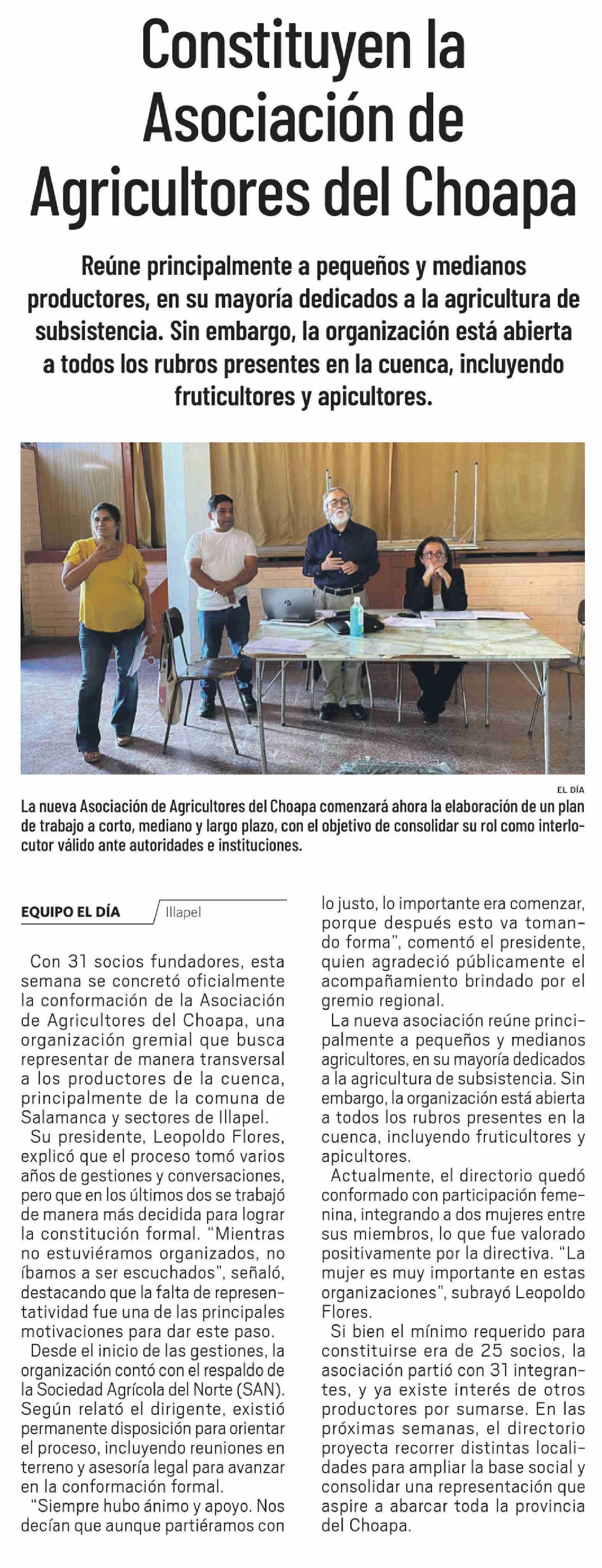 Título: Constituyen la Asociación de Agricultores del Choapa