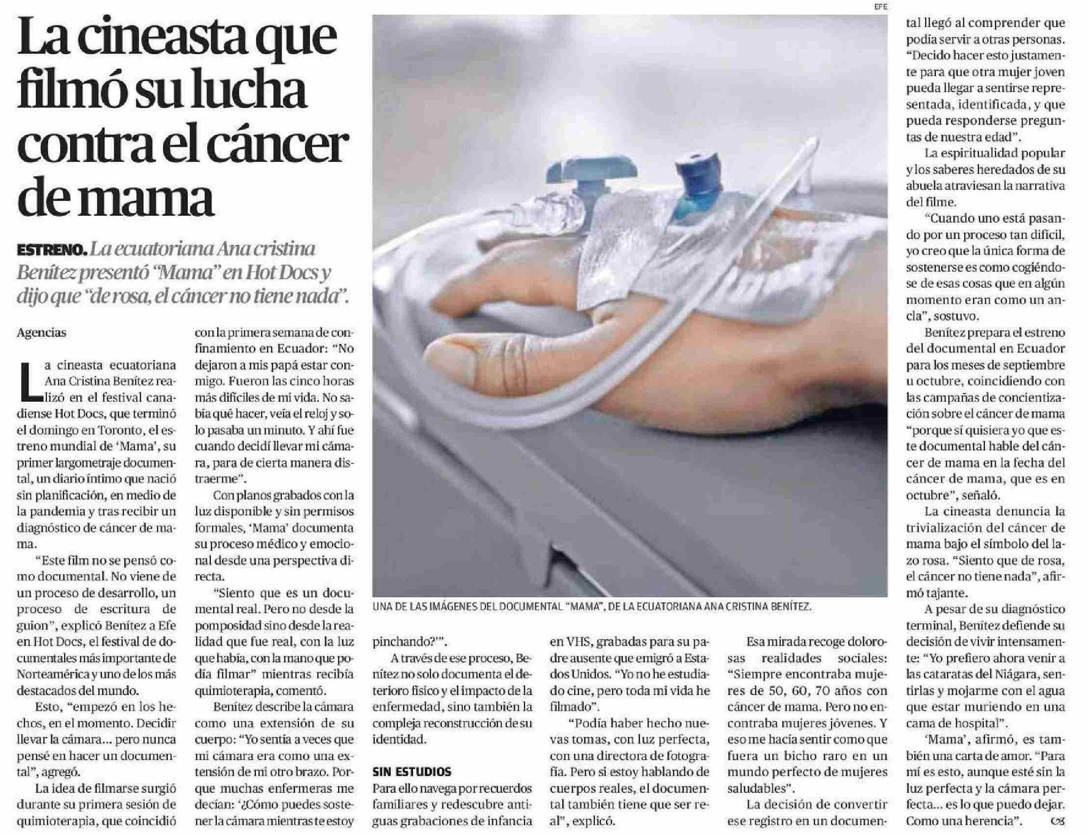 La cineasta que filmó su lucha contra el cáncer de mama 07-05-2025 El Mercurio de Calama |