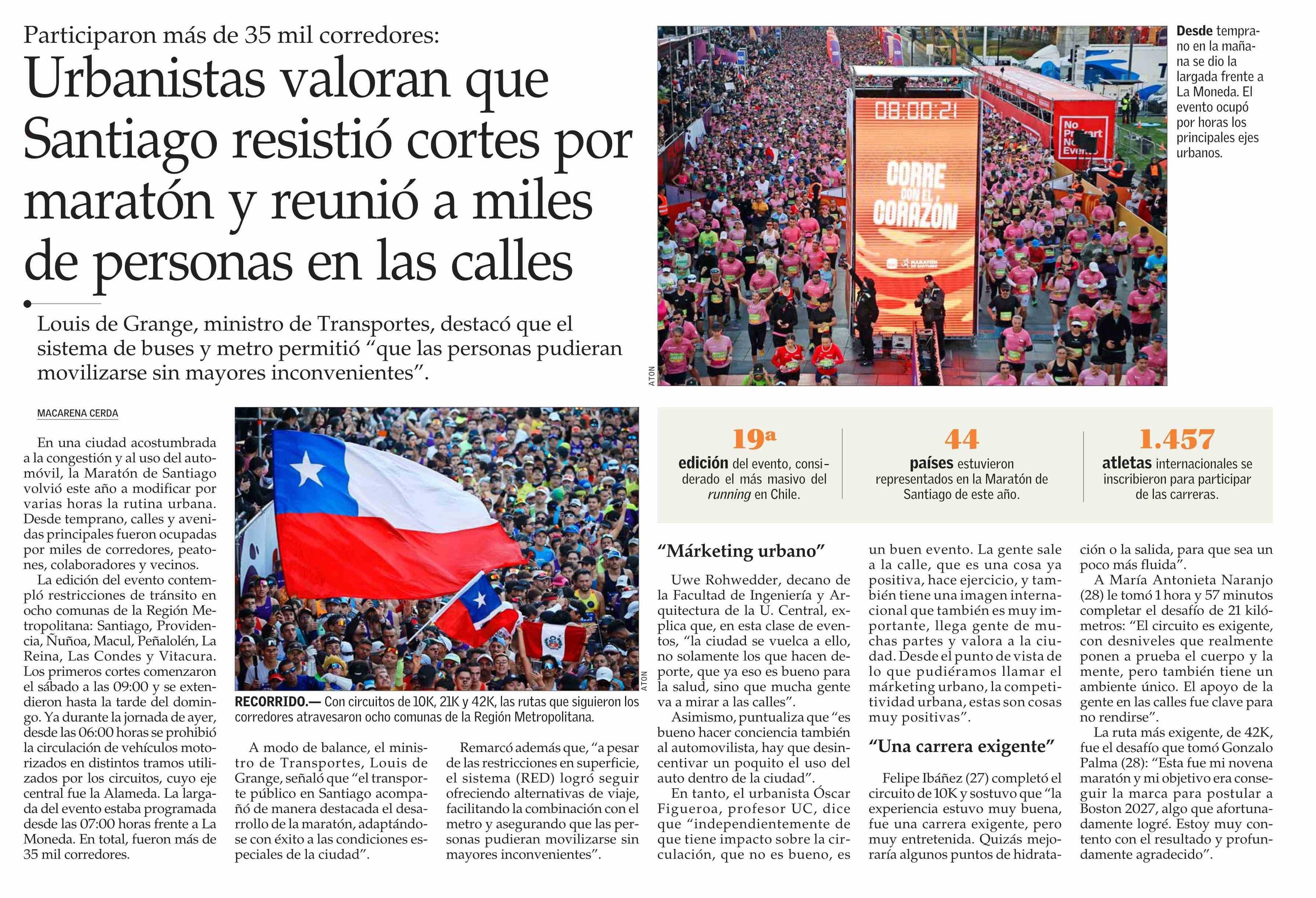 Urbanistas valoran que Santiago resistió cortes por maratón y reunió a miles de personas en las calles 27-04-2026 El Mercurio |