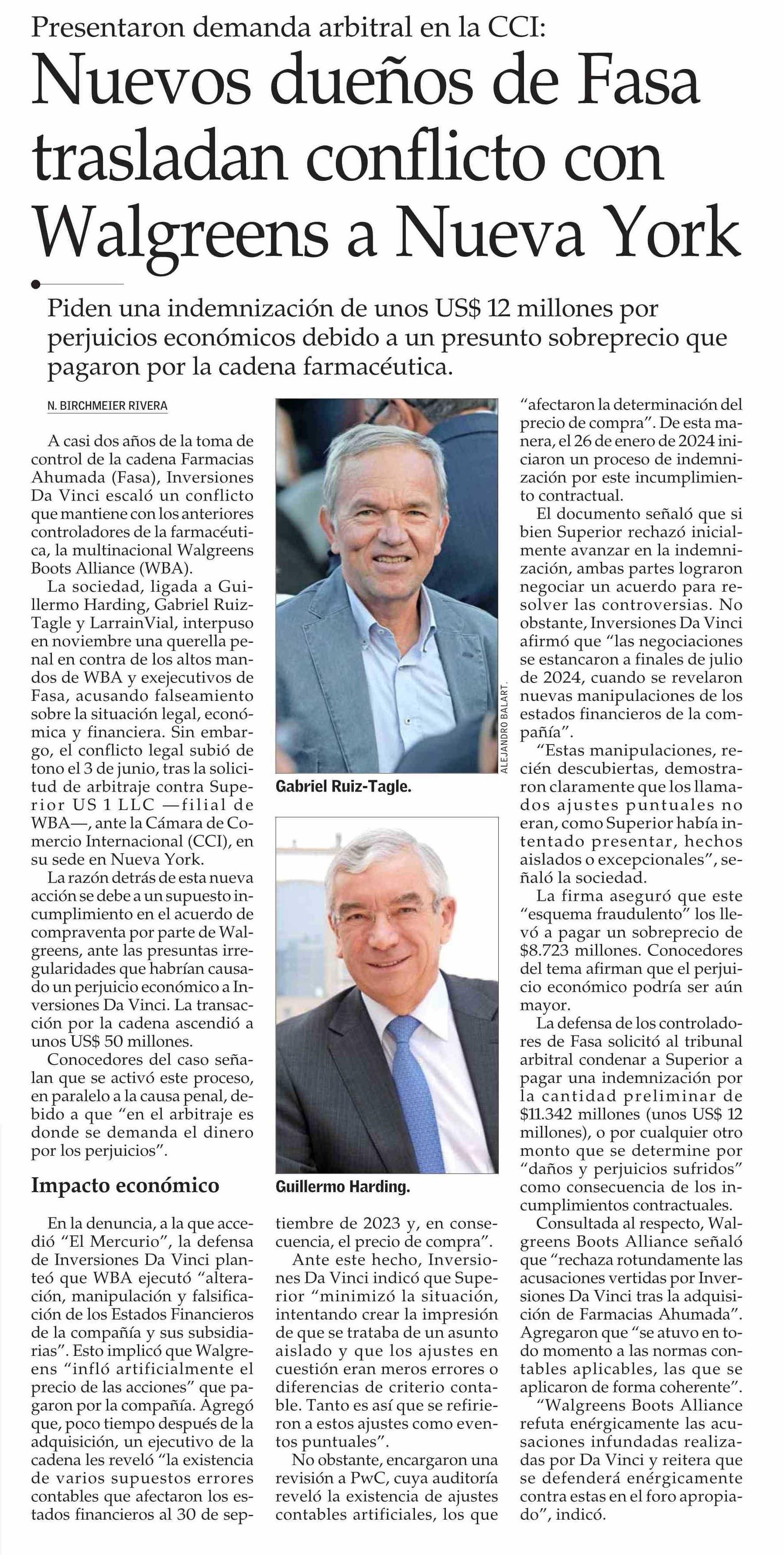 Nuevos dueños de Fasa trasladan conflicto con Walgreens a Nueva York 06-06-2025 El Mercurio |