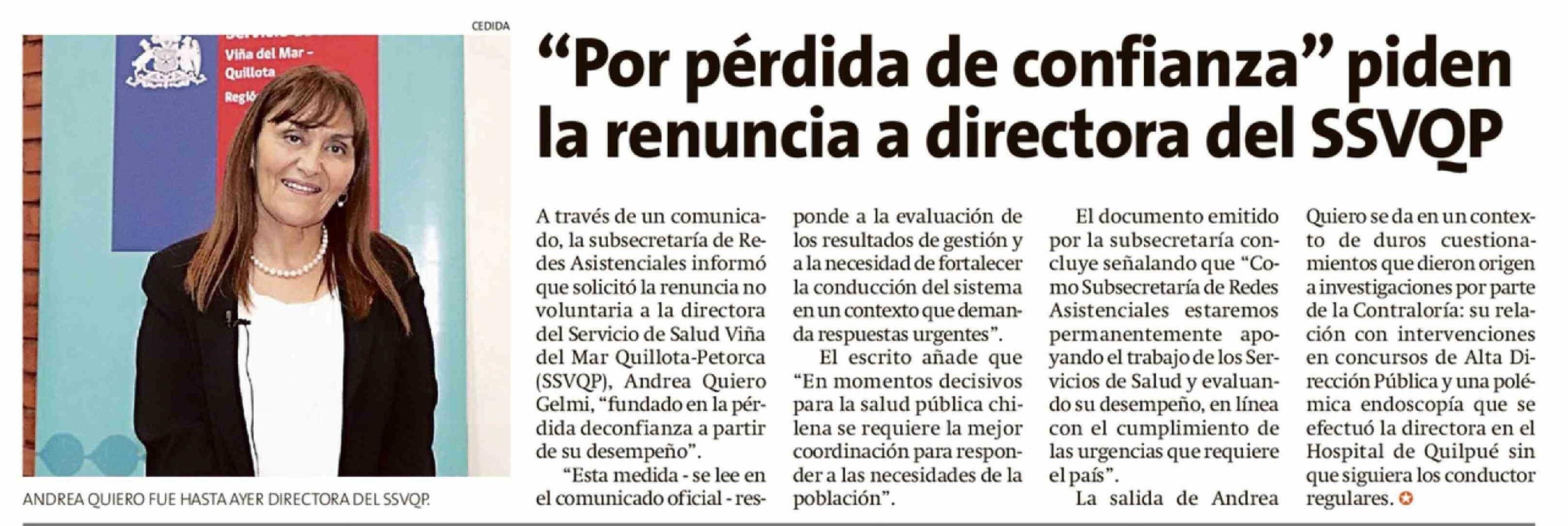Título: "Por pérdida de confianza" piden la renuncia a directora del SSVQP