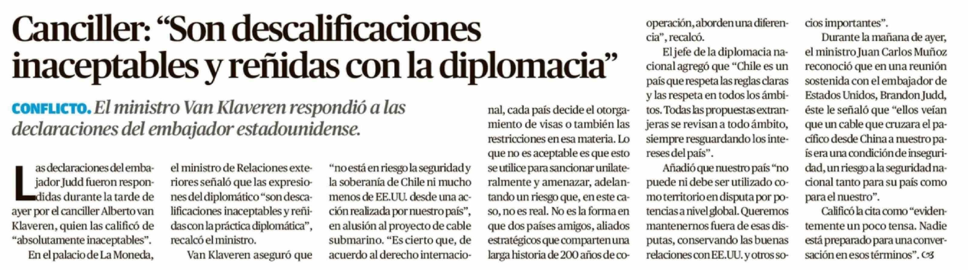Título: Canciller: "Son descalificaciones inaceptables y reñidas con la diplomacia"