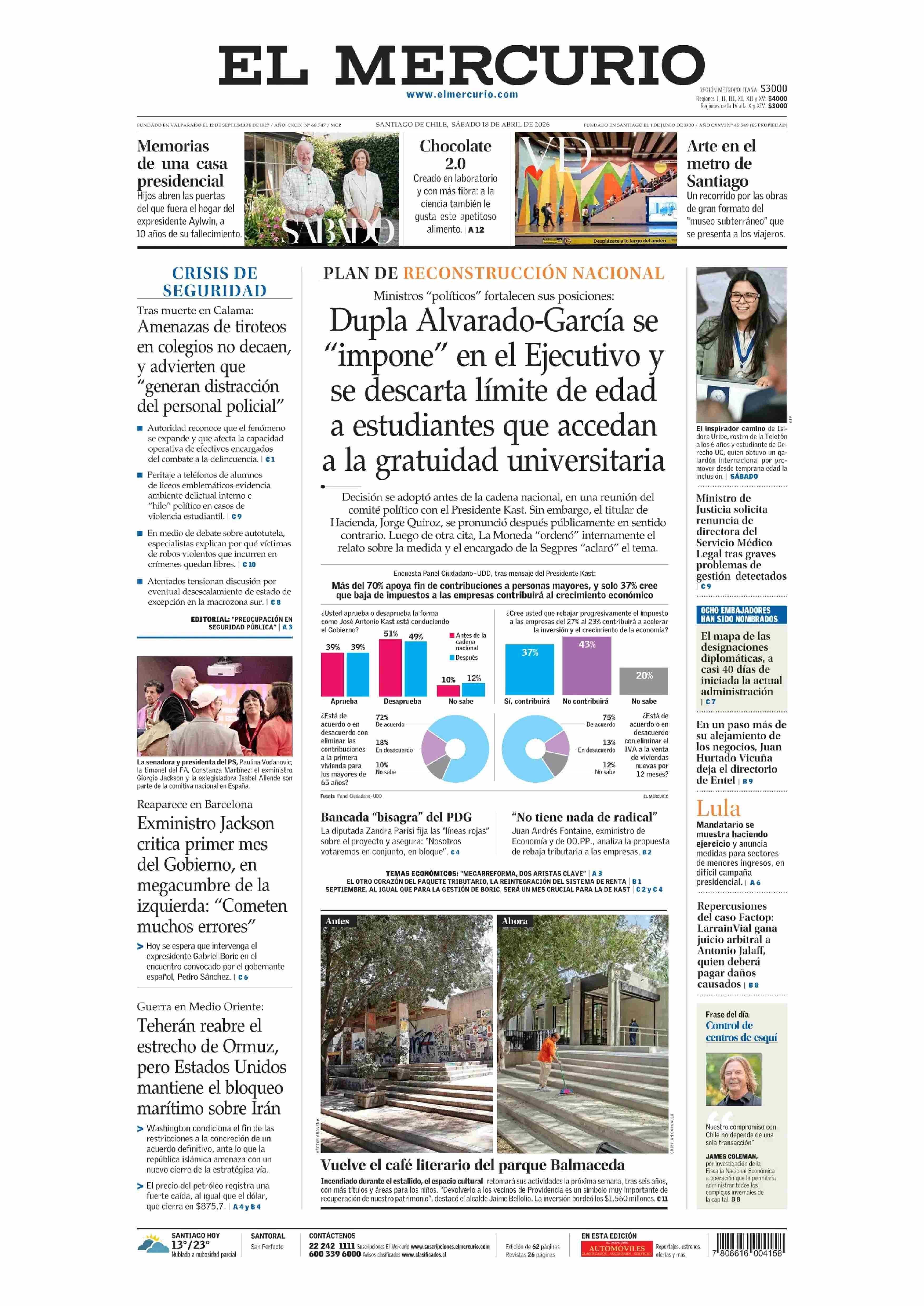 PORTADA EL MERCURIO (A) CHILE 18-04-2026 El Mercurio |