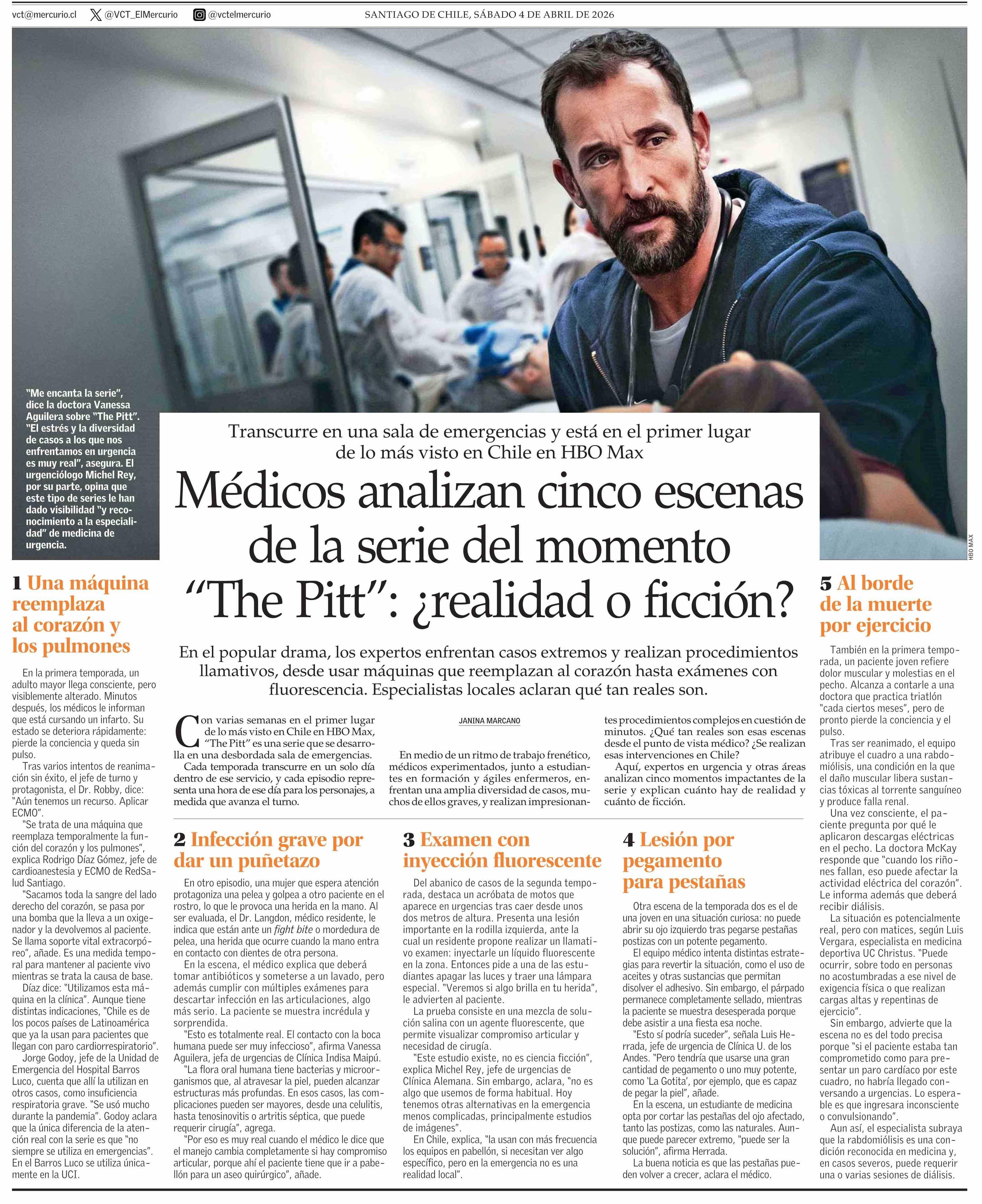 Médicos analizan cinco escenas de la serie del momento “The Pitt”: ¿realidad o ficción? 04-04-2026 El Mercurio |