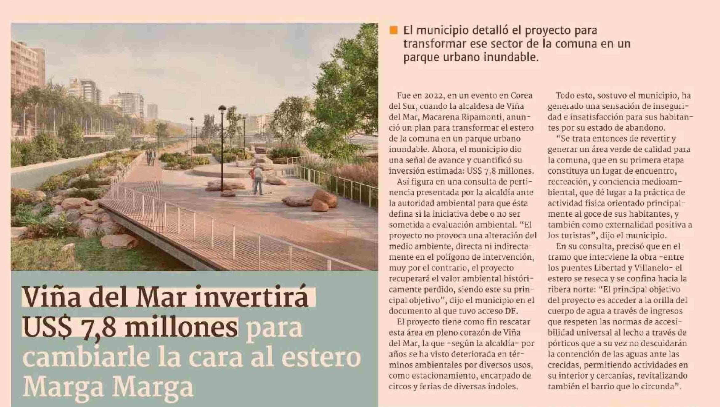 Viña del Mar invertirá USS 7,8 millones para cambiarle la cara al estero Marga Marga 26-05-2025 Diario Financiero |
