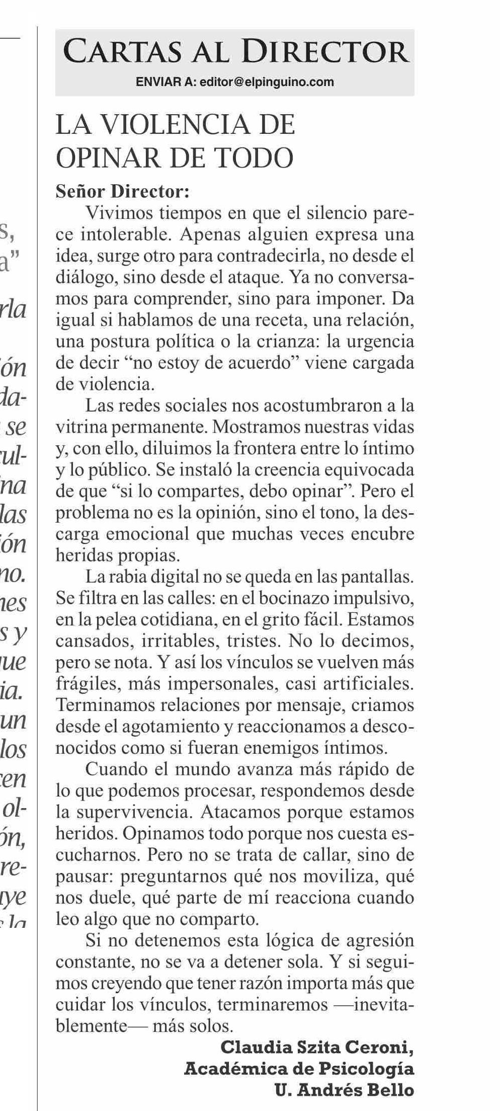 Título: CARTAS: CARTAS AL DIRECTOR VIOLENCIA DE OPINAR DE TODO