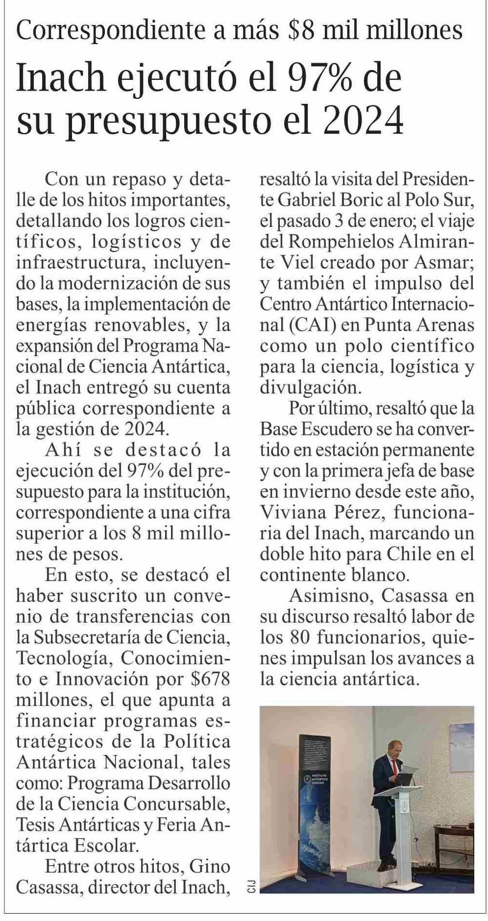 | Título: | Inach ejecutó el 97% de su presupuesto el 2024 |