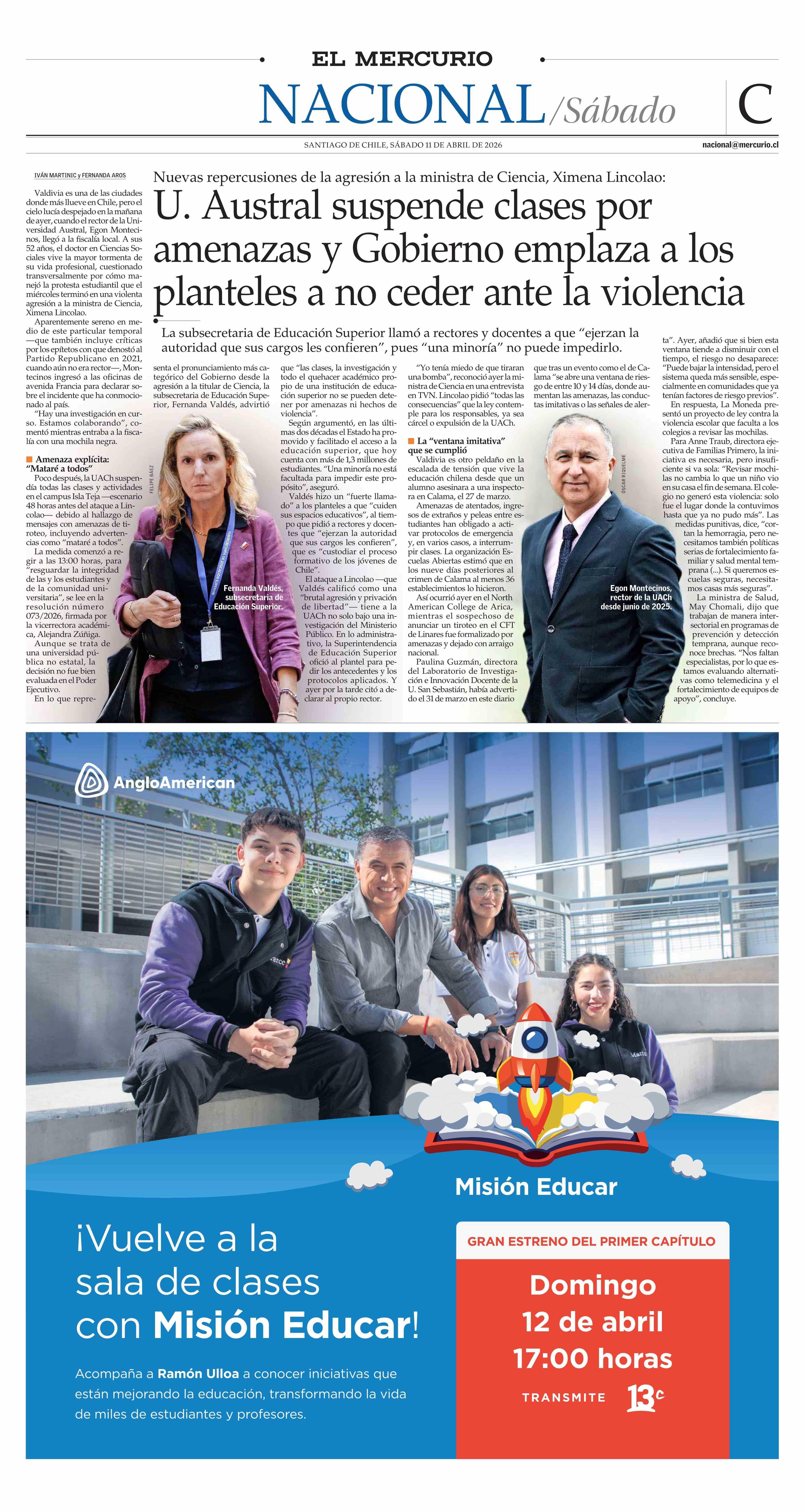PORTADA EL MERCURIO (C) CHILE 11-04-2026 El Mercurio |