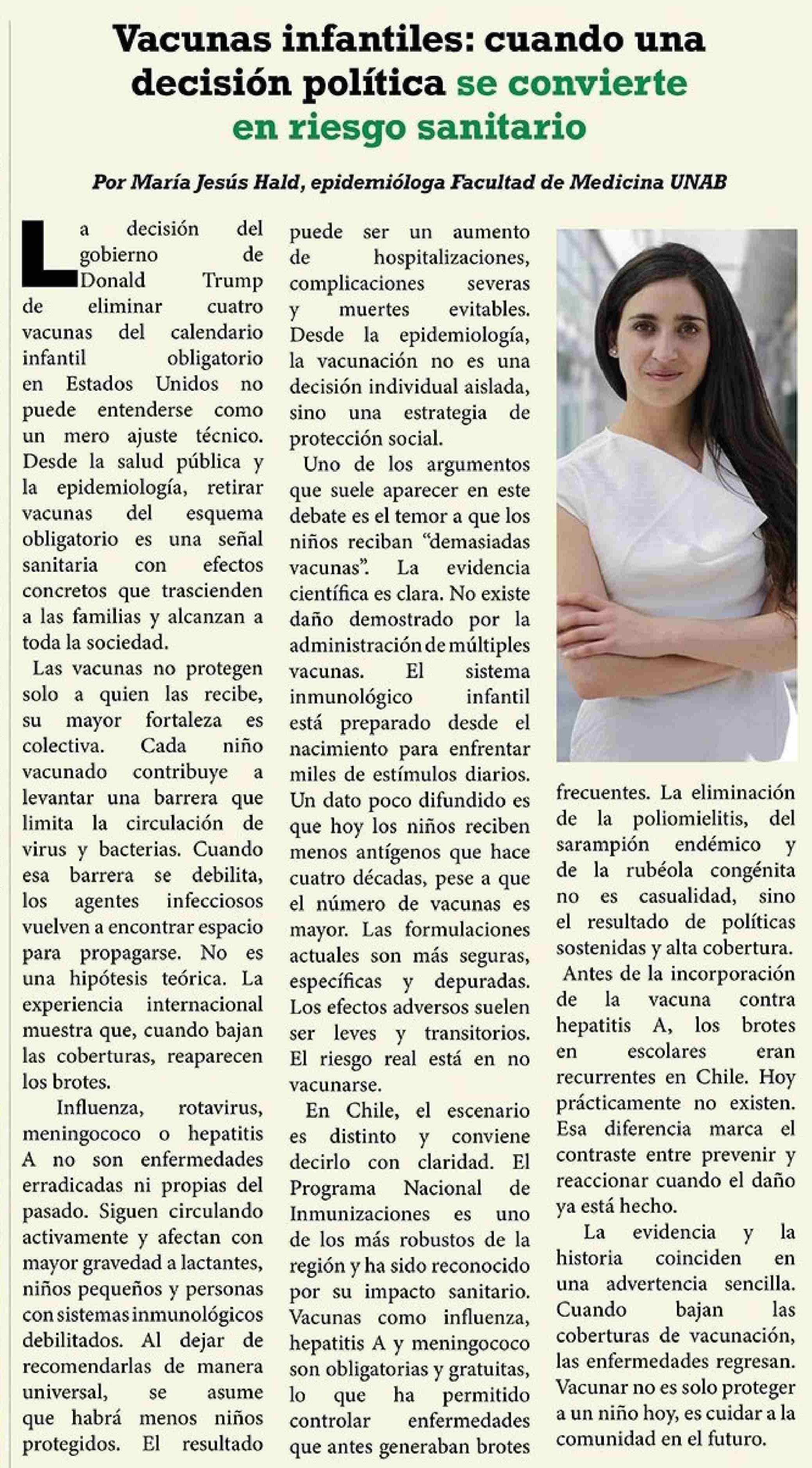 Vacunas infantiles: cuando una decisión política se convierte en riesgo sanitario 09-01-2026 El Heraldo Austral |