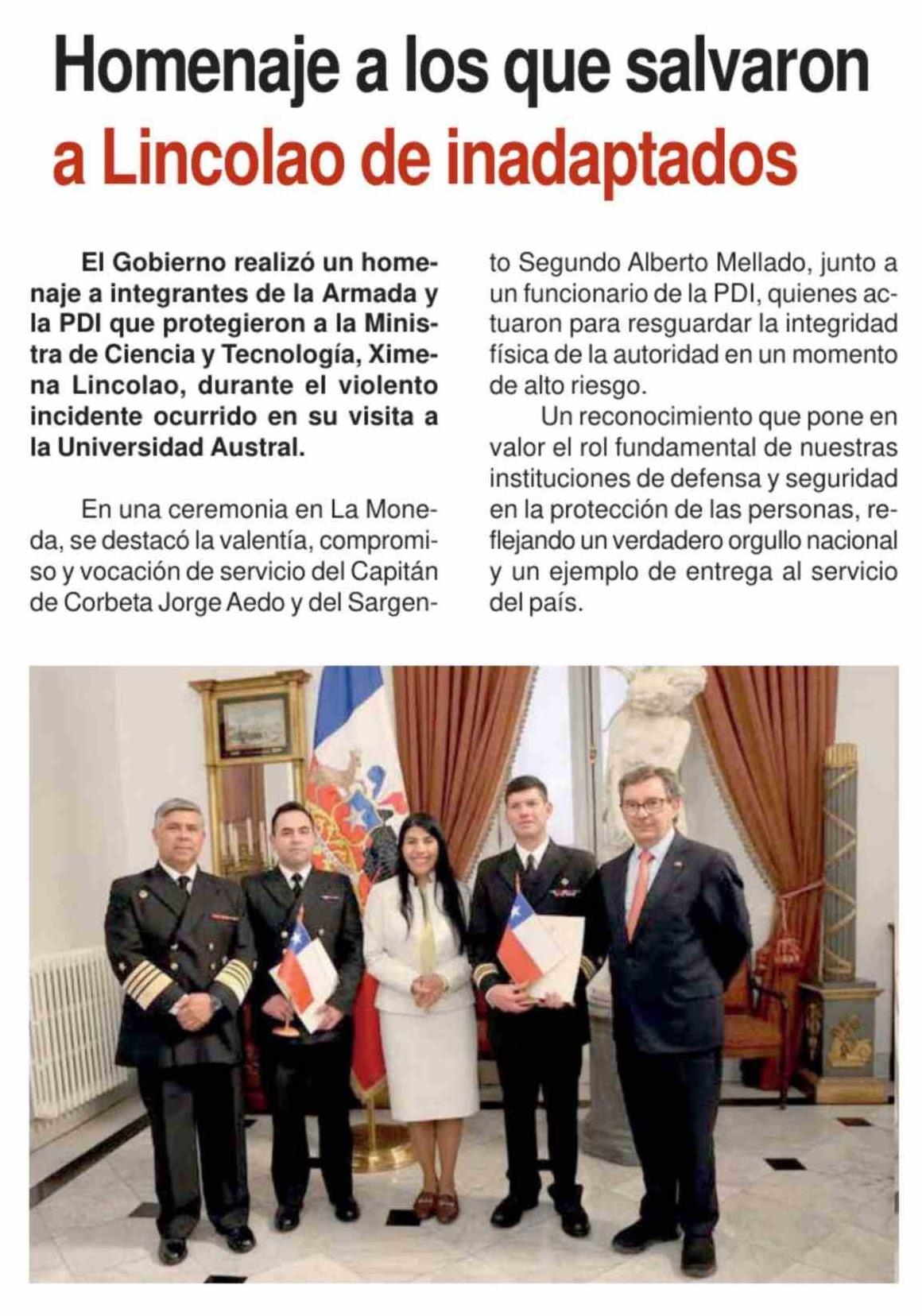 Homenaje a los que salvaron a Lincolao de inadaptados