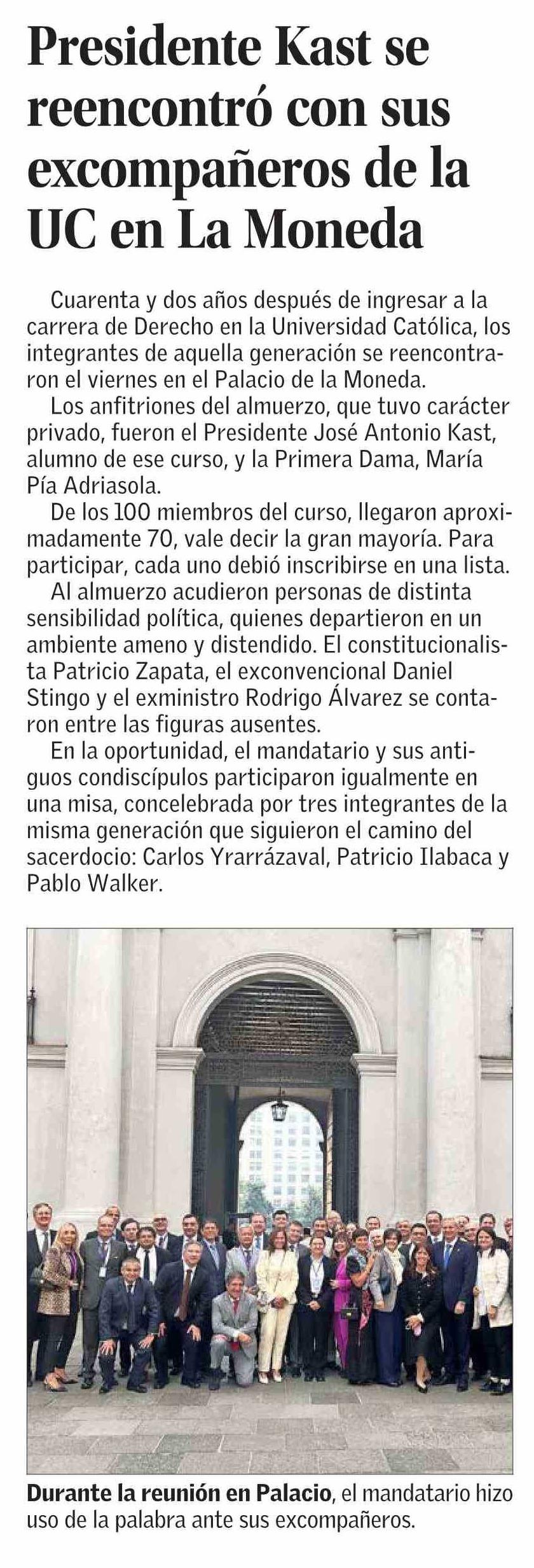 Título: Presidente Kast se reencontró con sus excompañeros de la UC en La Moneda
