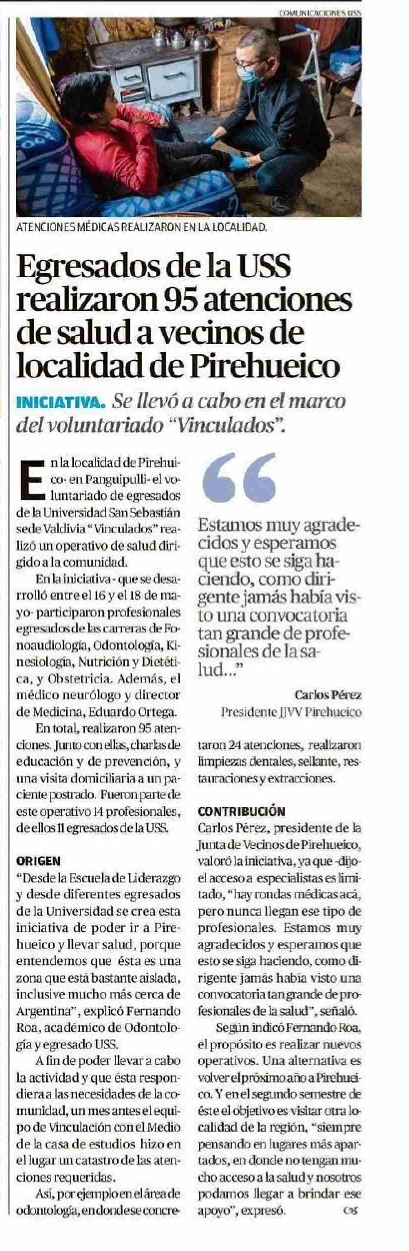 Título: Egresados de la USS realizaron 95 atenciones de salud a vecinos de localidad de Pirehueico