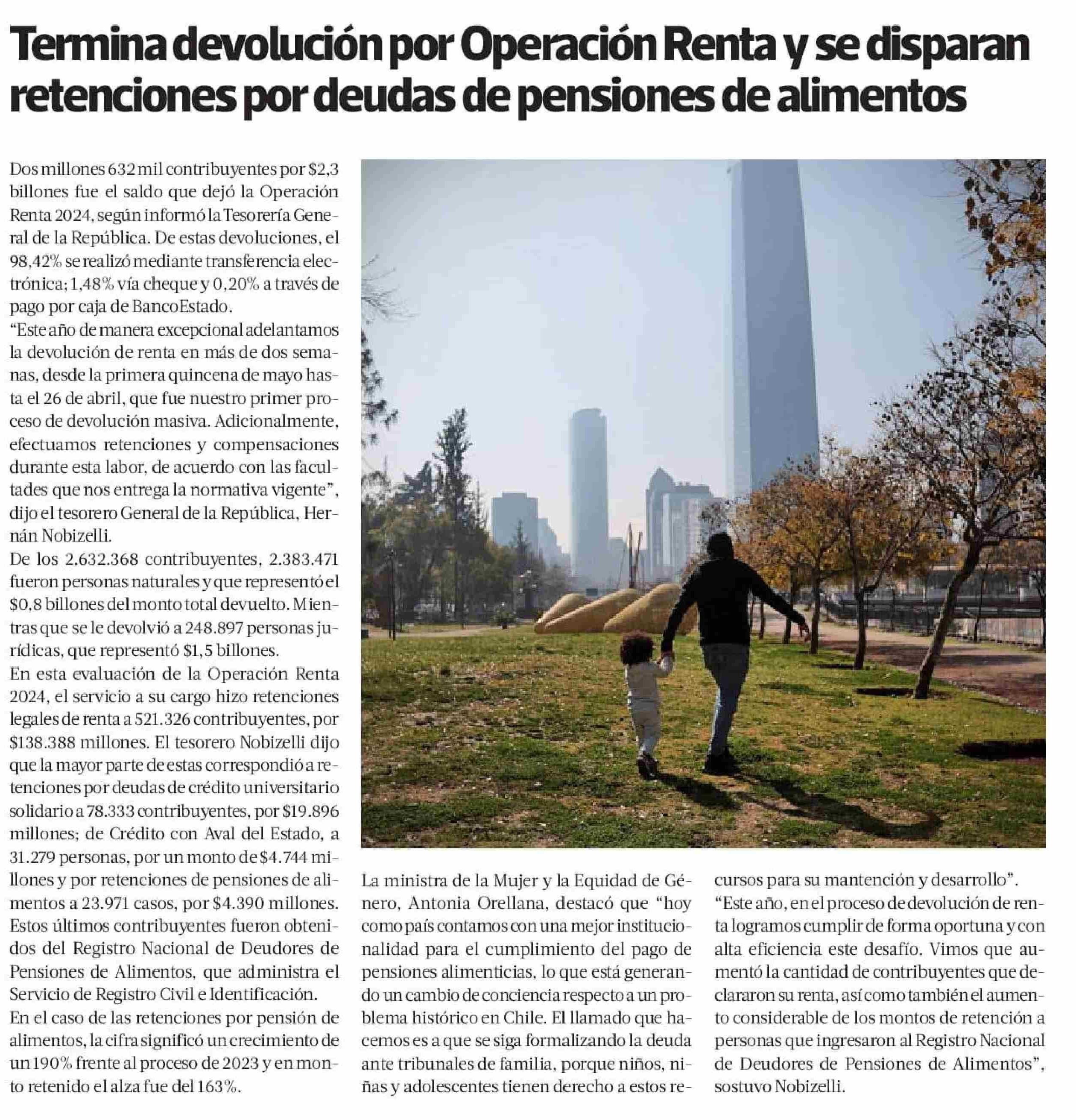 Termina devolución por Operación Renta y se disparan retenciones por deudas de pensiones de alimentos 06-06-2024 La Tercera |