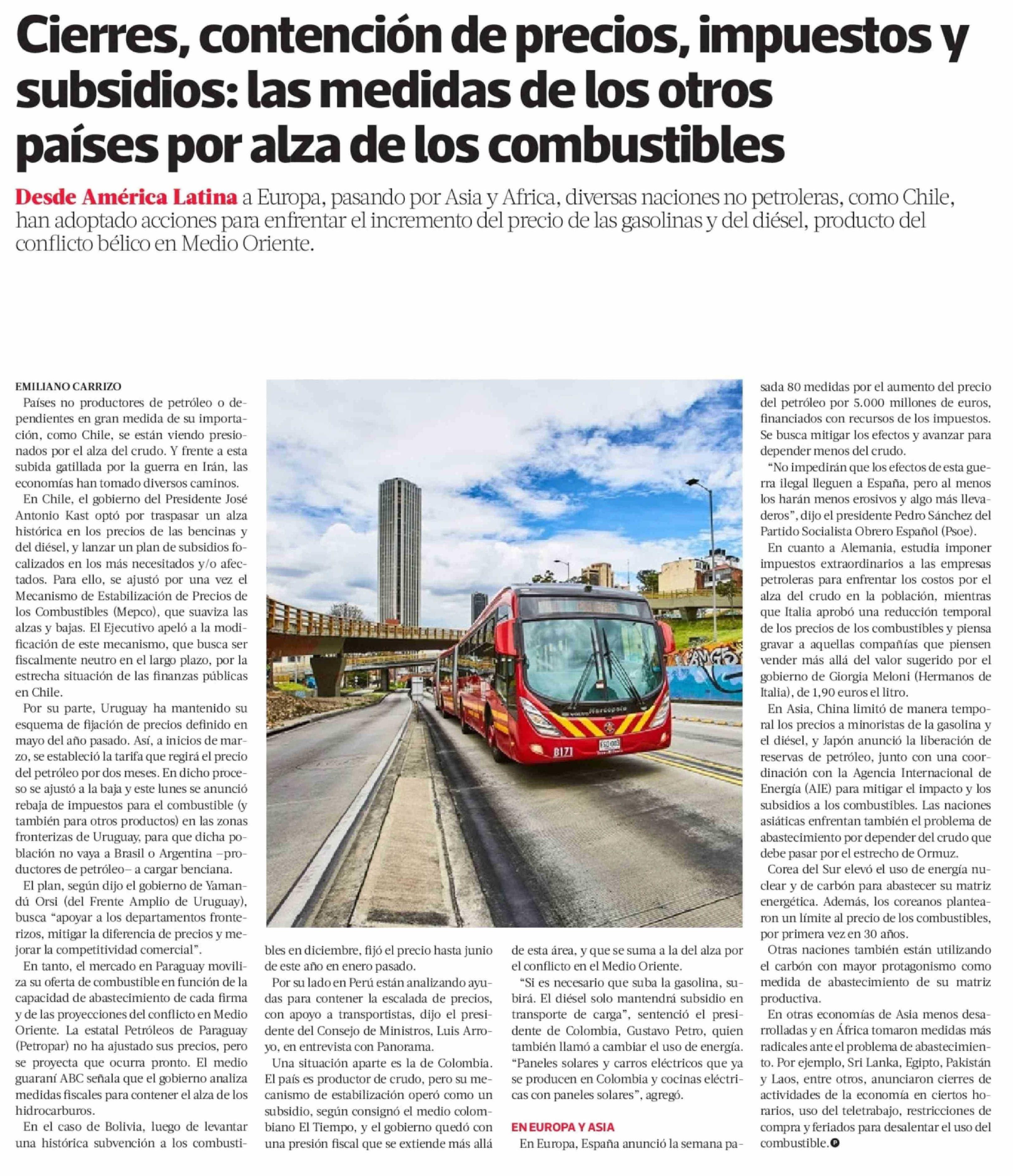 Cierres, contención de precios, impuestos y subsidios: las medidas de los otros países por alza de los combustibles 25-03-2026 La Tercera |