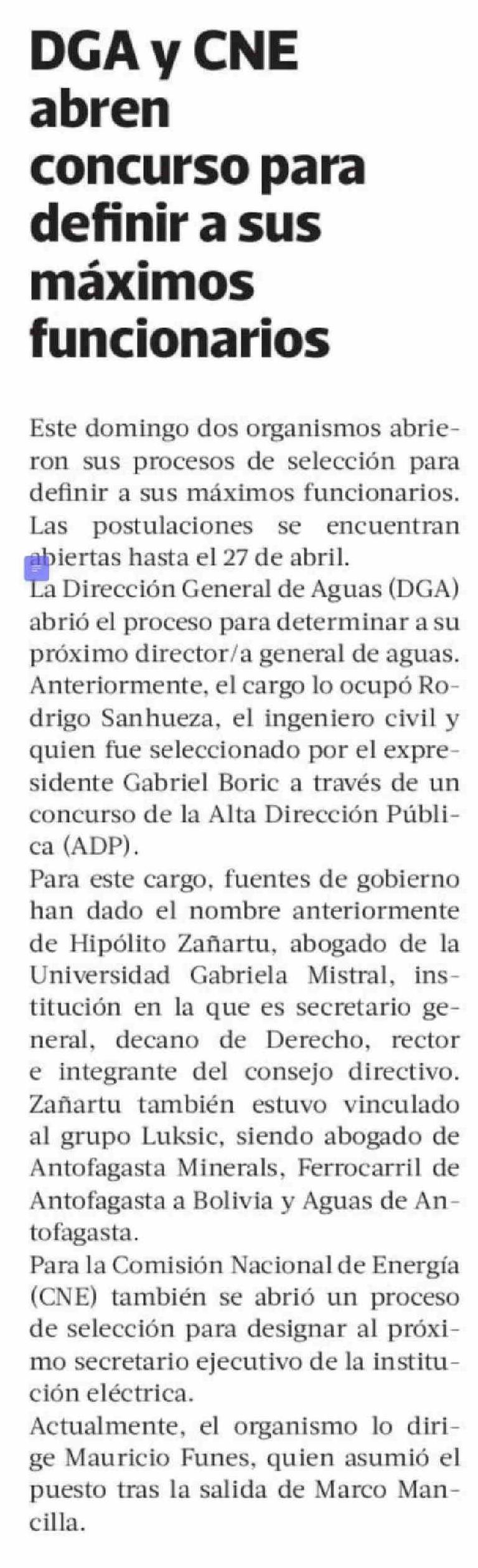 Título: DGA y CNE abren concurso para definir a sus máximos funcionarios