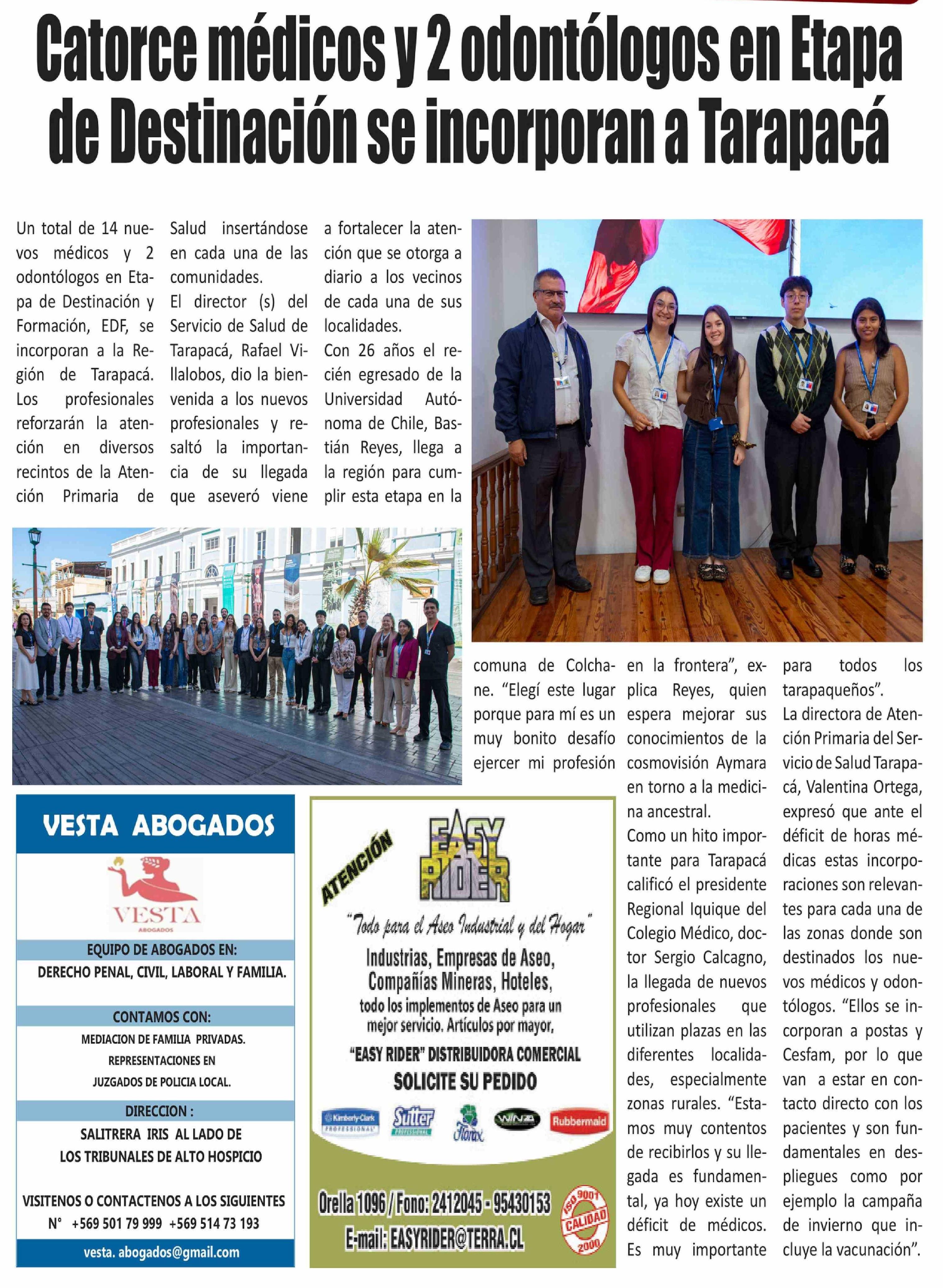 Catorce médicos y 2 odontólogos en Etapa de Destinación se incorporan a Tarapacá 09-04-2026 El Longino |