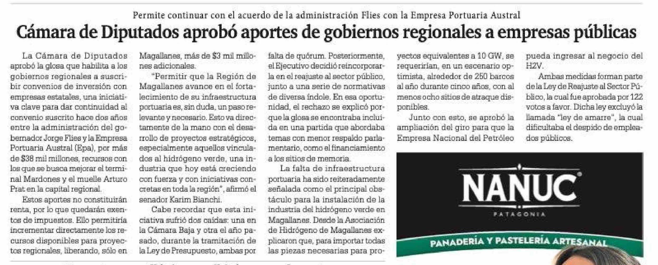 Cámara de Diputados aprobó aportes de gobiernos regionales a empresas públicas 22-01-2026 La Prensa Austral |