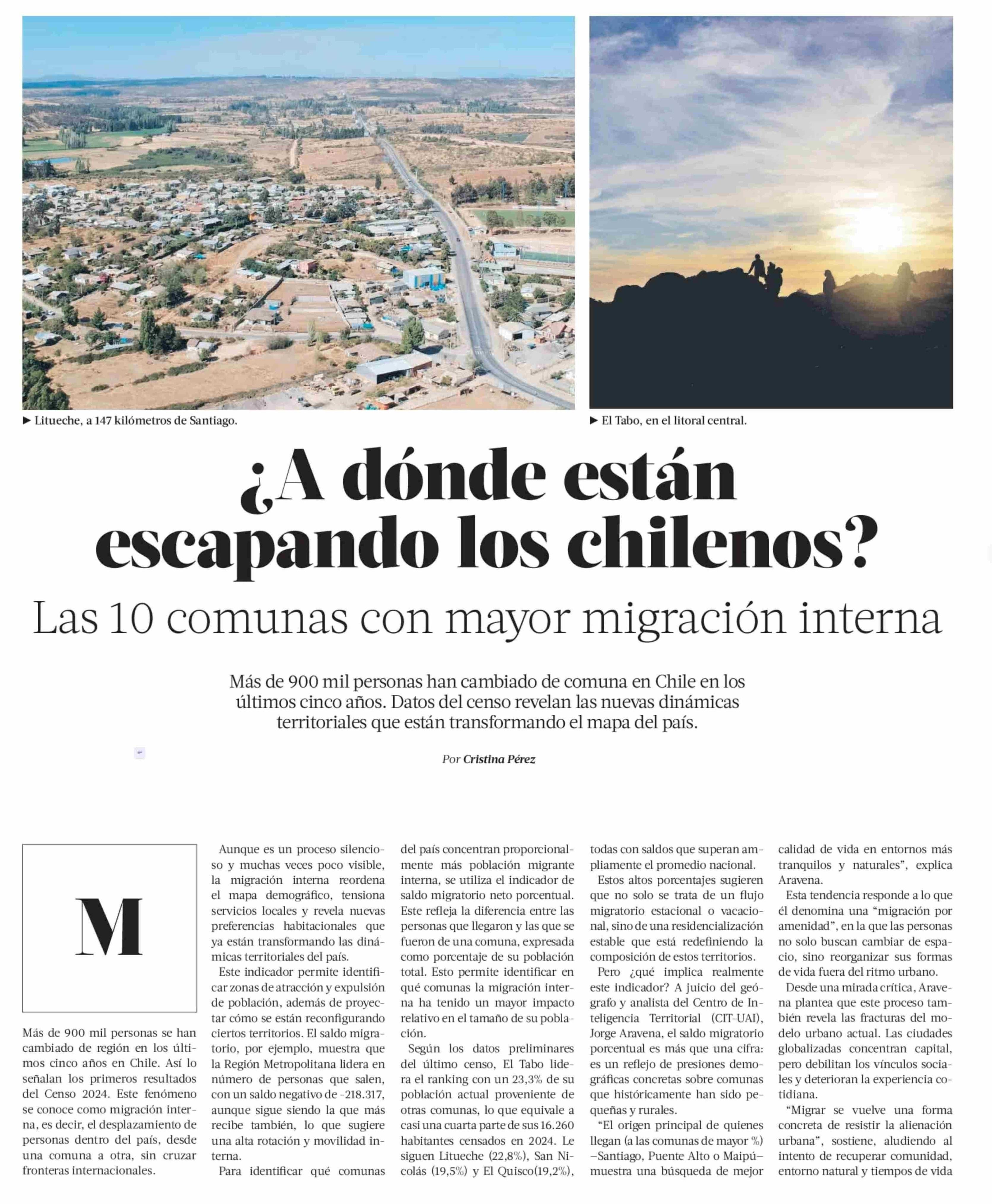 ¿A dónde están escapando los chilenos? Las 10 comunas con mayor migración interna 14-06-2025 La Tercera |
