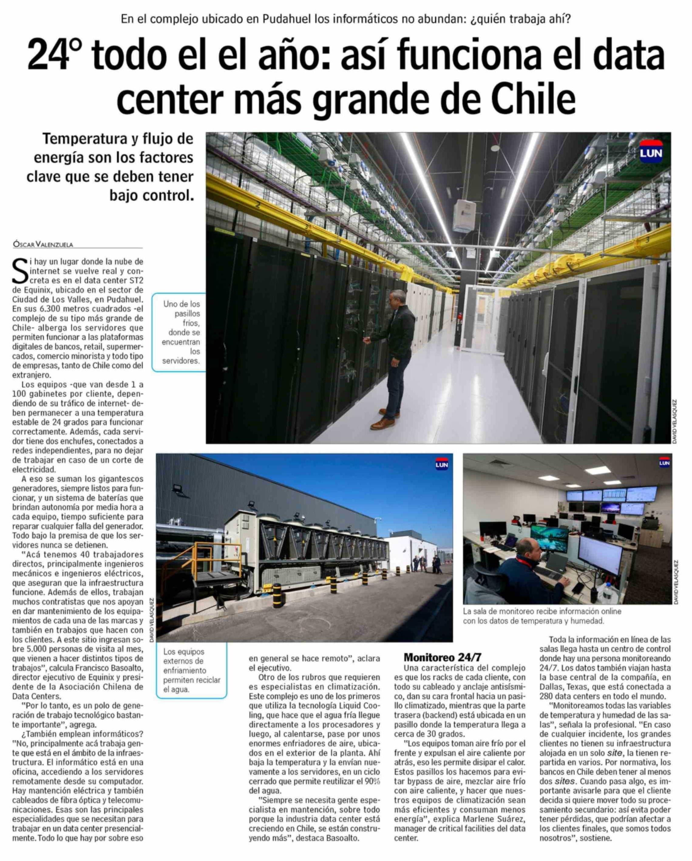 24° Todo el el año: así funciona el data center más grande de Chile 14-04-2026 Las Últimas Noticias |
