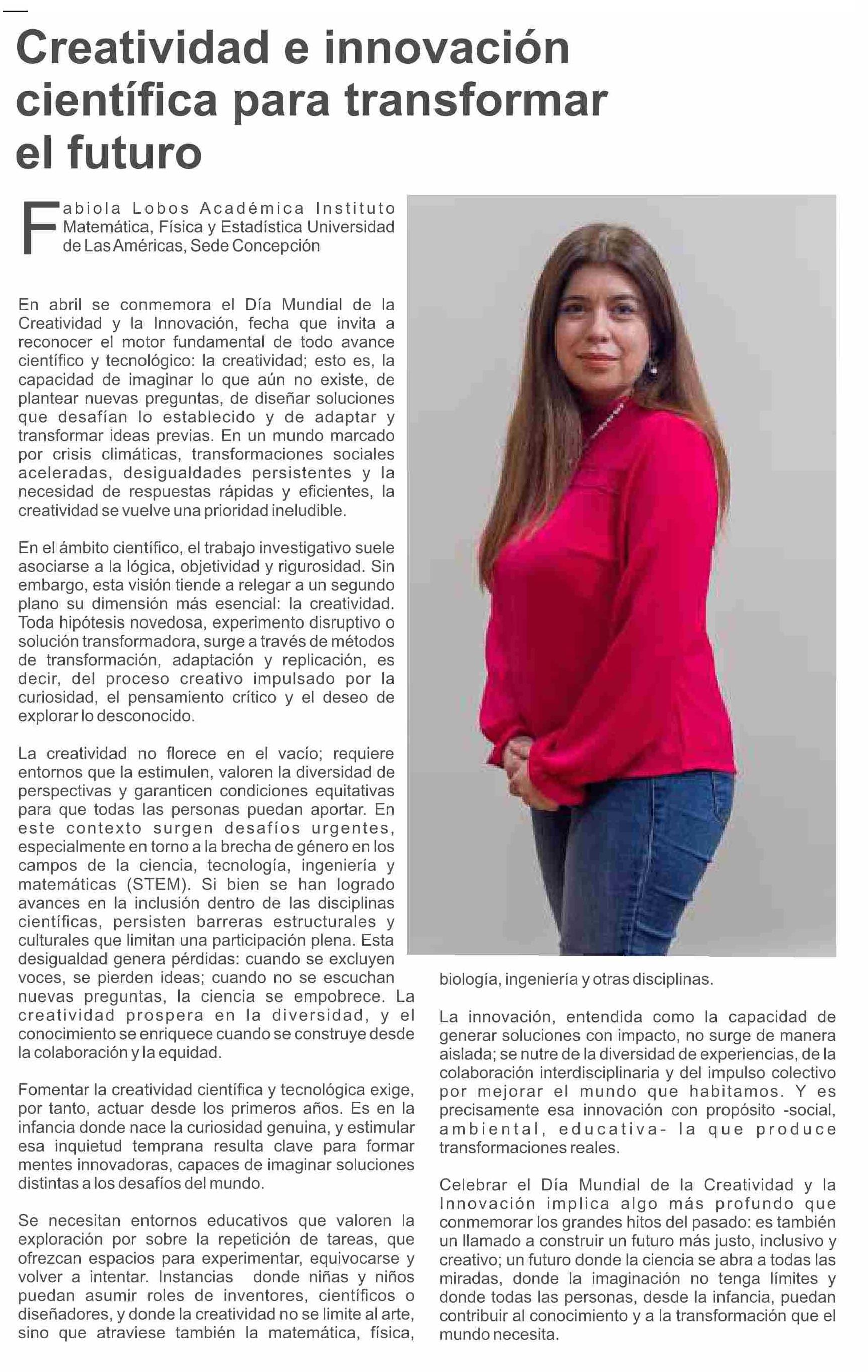 Título: COLUMNAS DE OPINIÓN: Creatividad e innovación científica para transformar el futuro