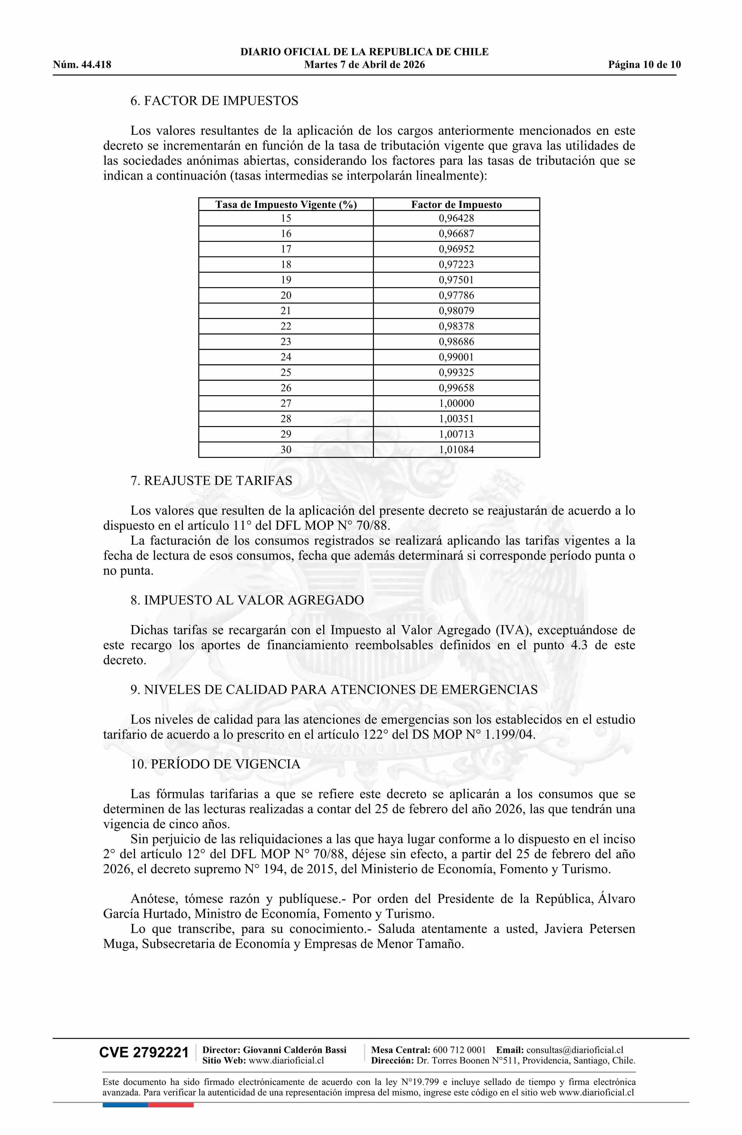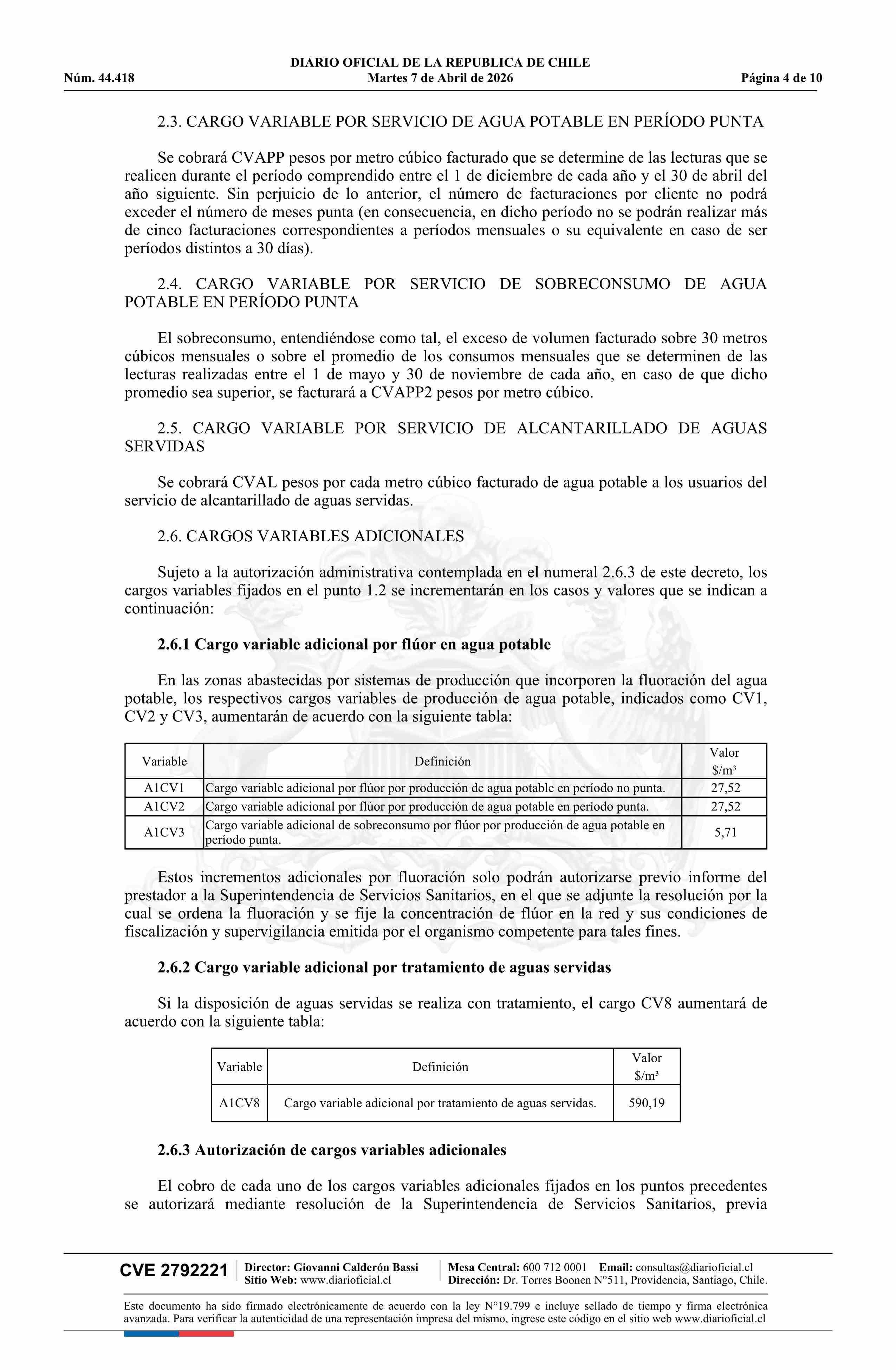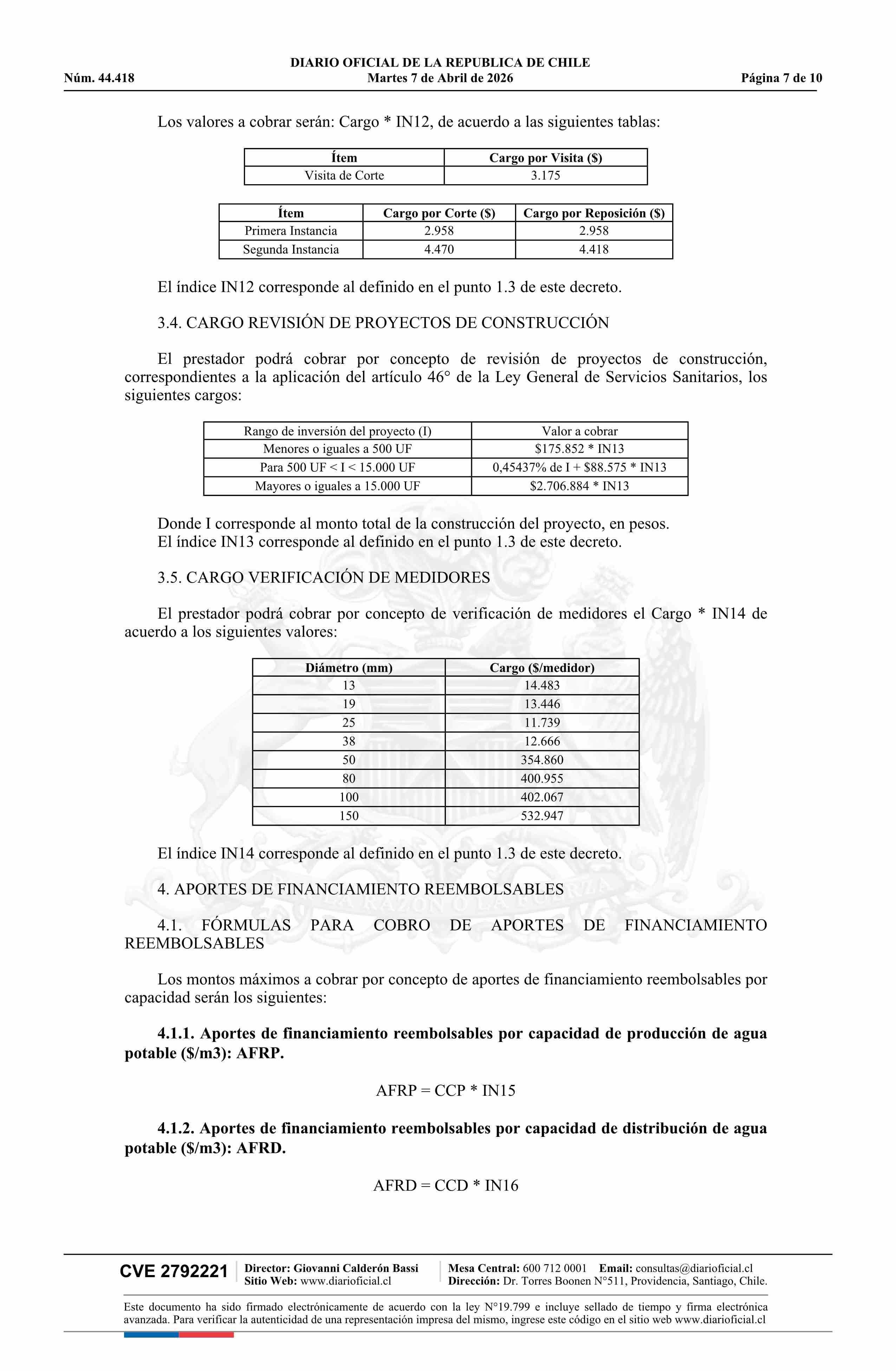 | Título: | Decreto número 13, de 2026.- Fija fórmulas tarifarias de los servicios de producción y distribución de agua potable y recolección y disposición de aguas servidas para el área denominada Sector Alto de Zapallar, comuna de Curicó, Región del Maule, de la empresa Aguas San Pedro S.A. |