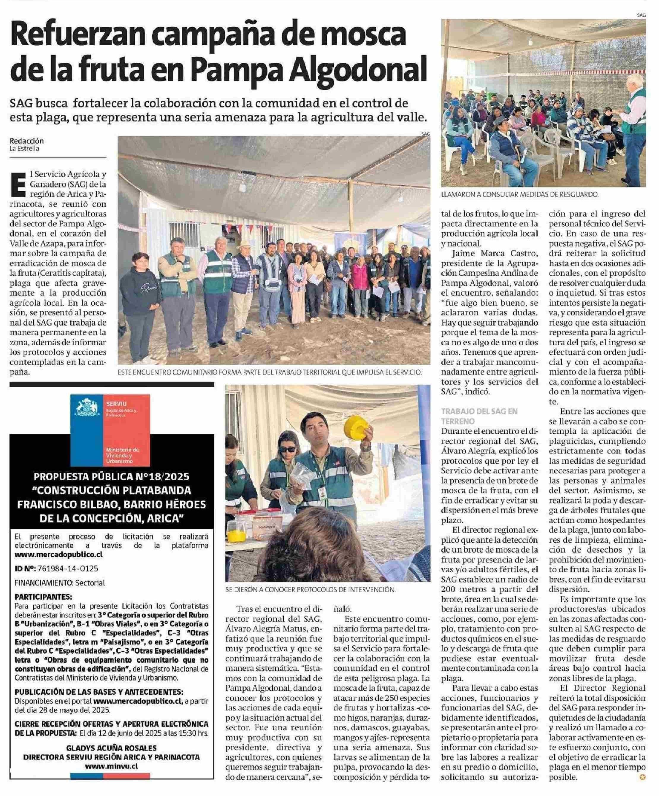 Refuerzan campaña de mosca de la fruta en Pampa Algodonal 28-05-2025 La Estrella de Arica |